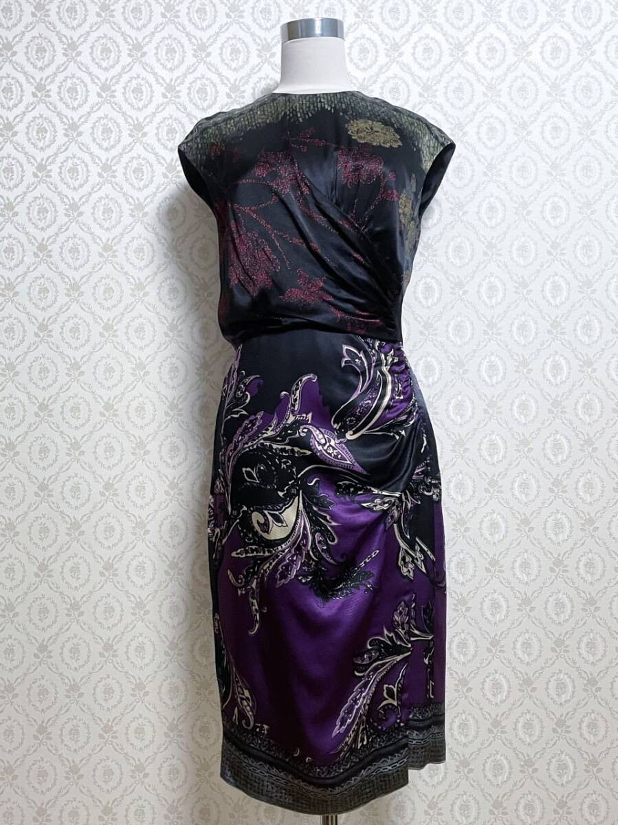 ETRO エトロ ペイズリー柄ワンピース ブラック×パープル 黒×紫