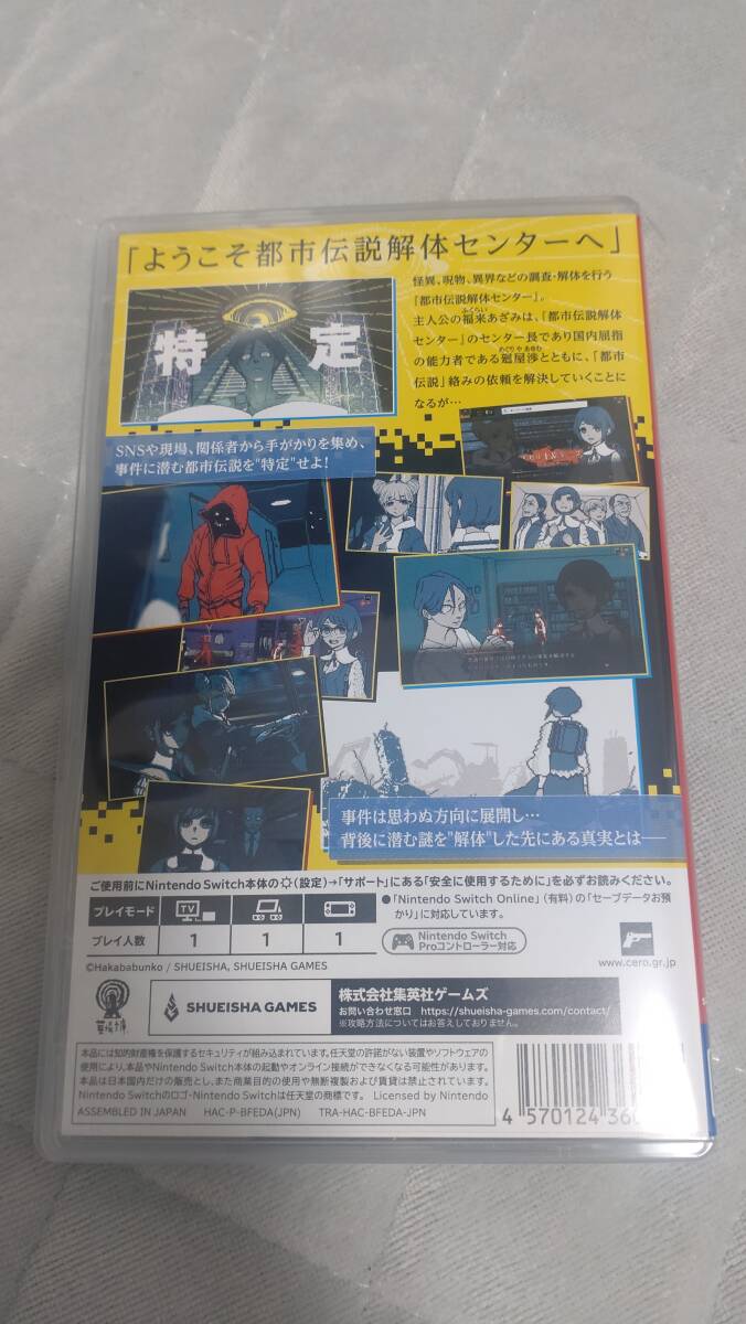 【Nintendo Switchソフト 都市伝説解体センター】美品です。