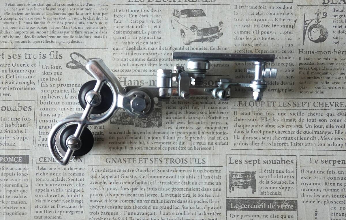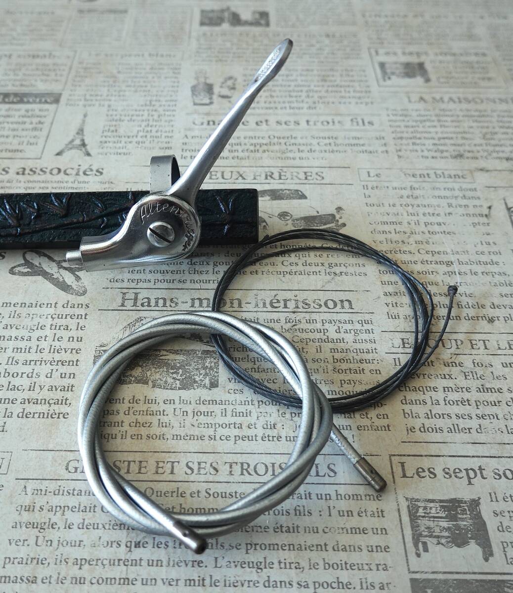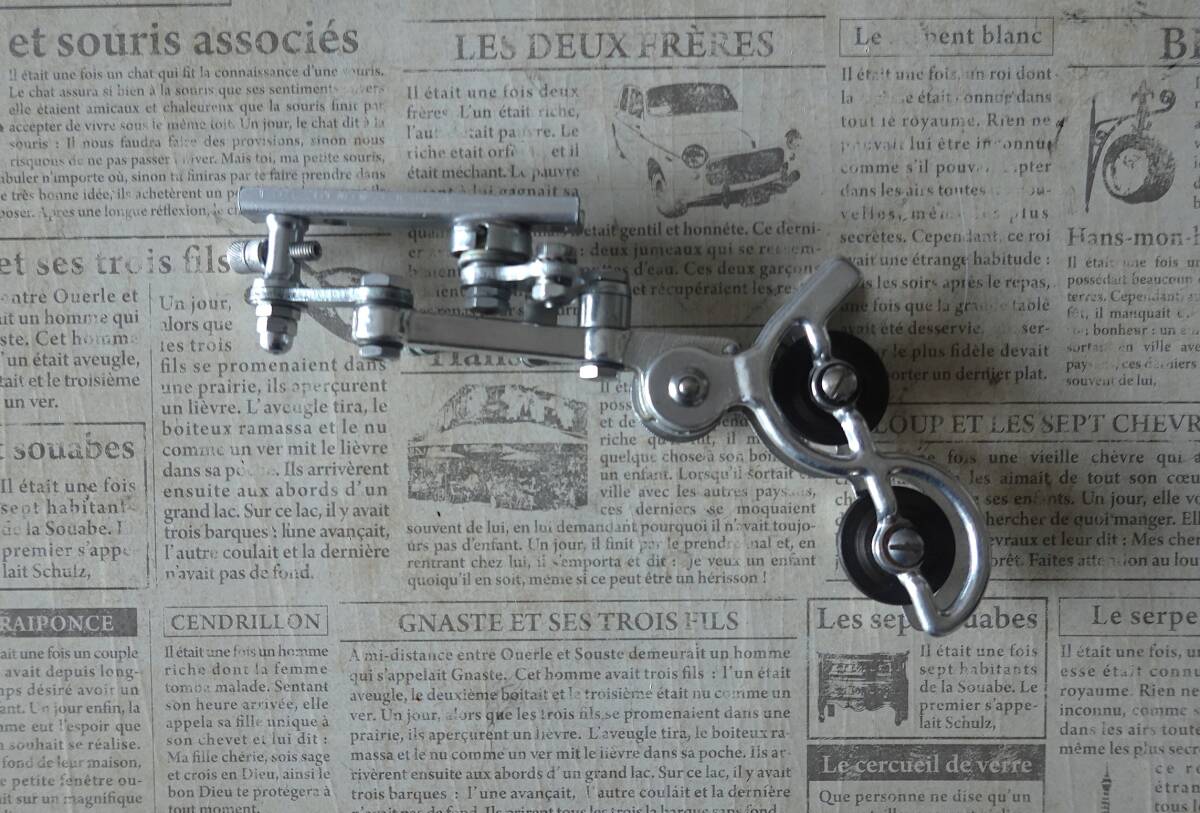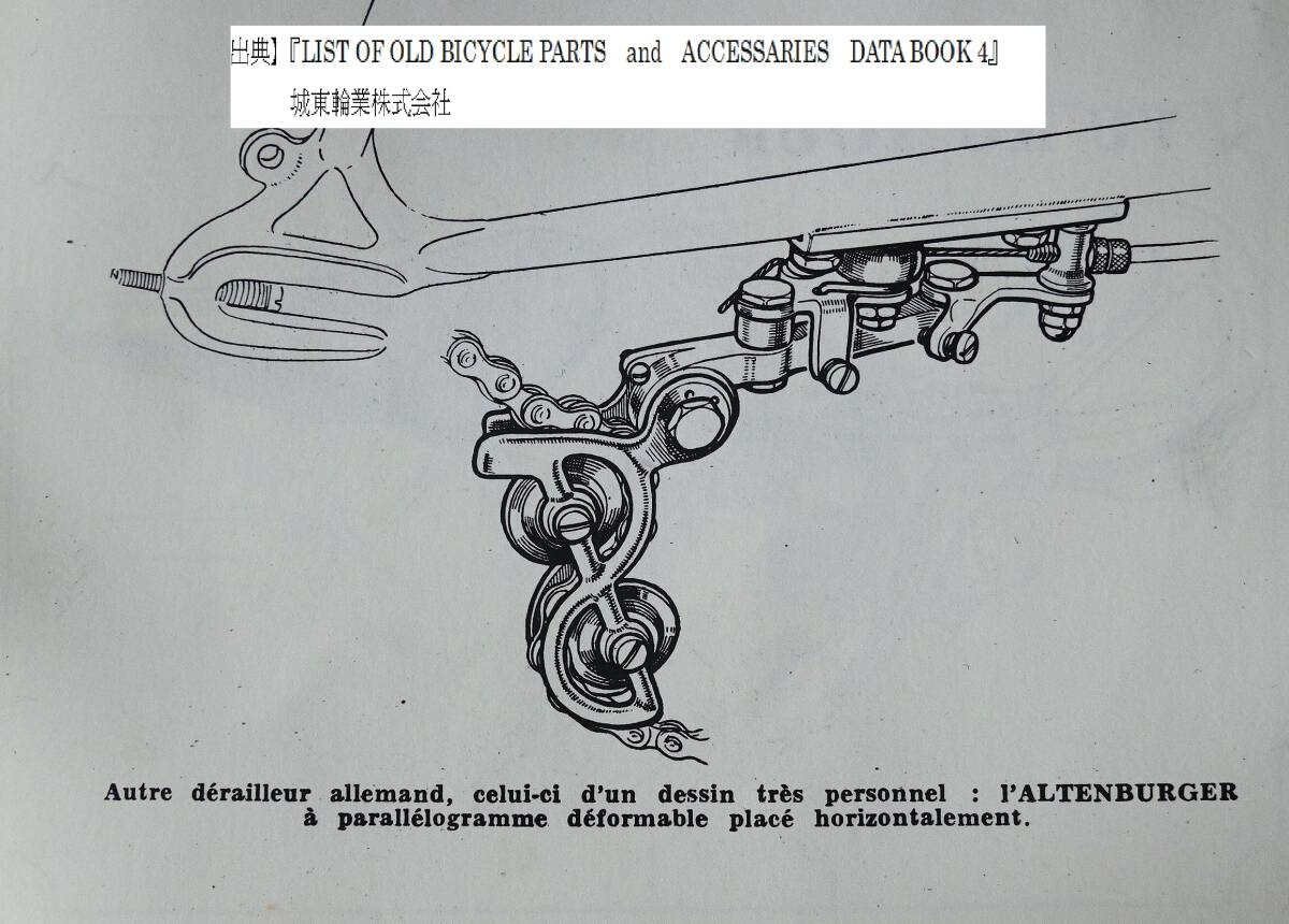 ご欄頂きありがとうございます。“アルテンバーガー(Altenbuger)”RDの箱入り未使用品です。”アルテンバーガー”は当時の西ドイツの総合自転車部品メーカーでディレイラー以外ではハブやステム、ブレーキなどを生産していて“ひょうたん”型の社マークが特徴的でした。本機は1955年頃に発表されたRDでチェーステー下部に取り付けてパンタグラフ式の変形型であるベルクランク方式でチェンジする特殊な機構です。キャパシティは13T、3Sか4S用と思われます。なお箱はボロボロですし、また手で左右に動かすとカクンカクンとスムーズに動きませんので支点(写真8枚目)のボルト穴を金ヤスリで少し削る作業が必要です。あくまでコレクション用ですがポタリング車などに付けて遊ぶのも面白いと思います。¥500の廉価で出品しますのでノークレーム、ノーリターンでお願いいたします。