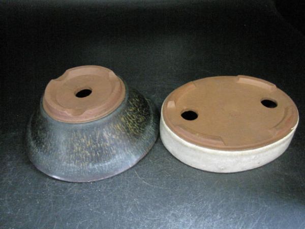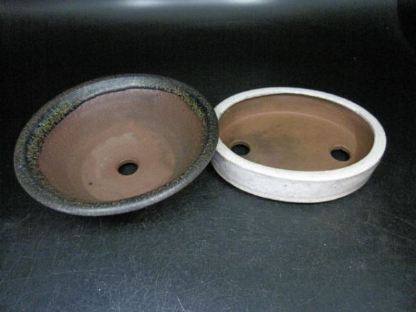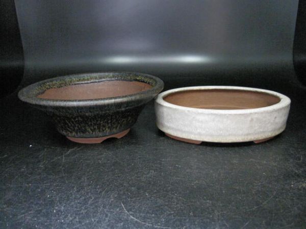 燿山 燿山窯(常滑 清水 正和) 瑠璃釉反縁切脚丸 155㍉ 白釉内縁切脚楕円 150x117 |