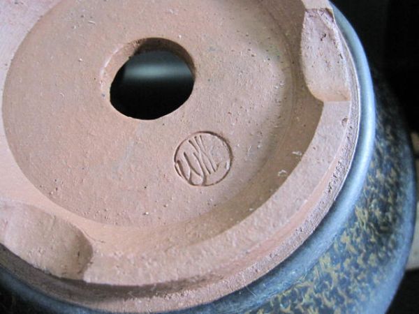 155x155x58 瑠璃釉窯変反り縁切脚陣笠 落款/燿山 |