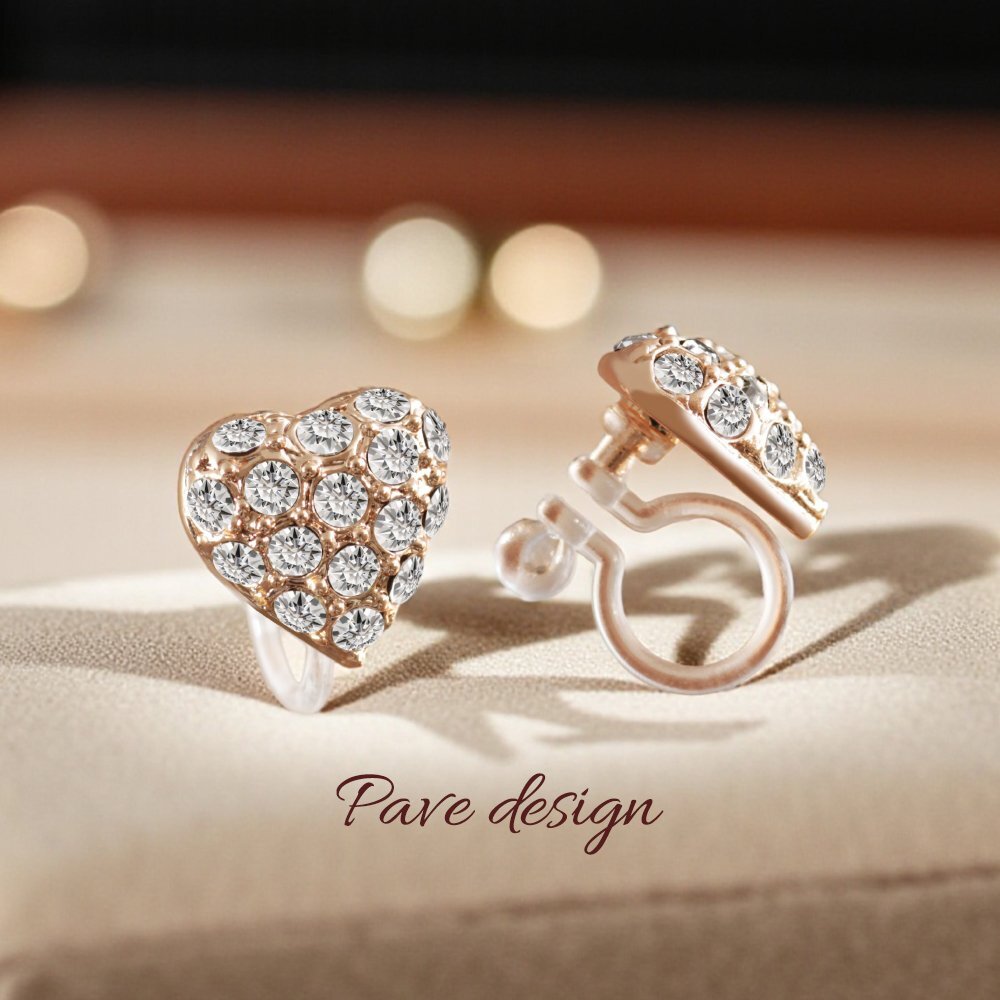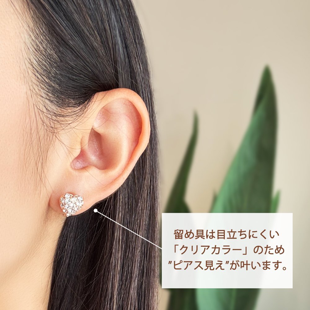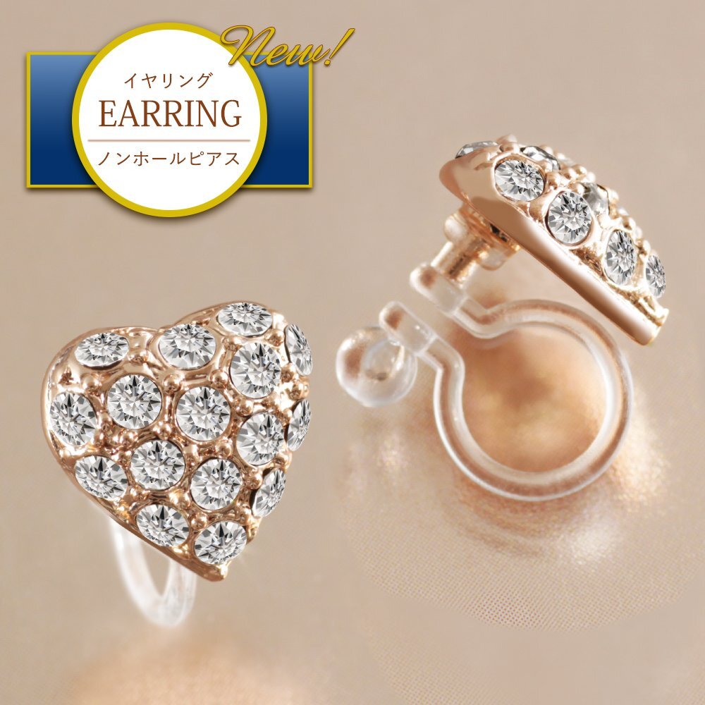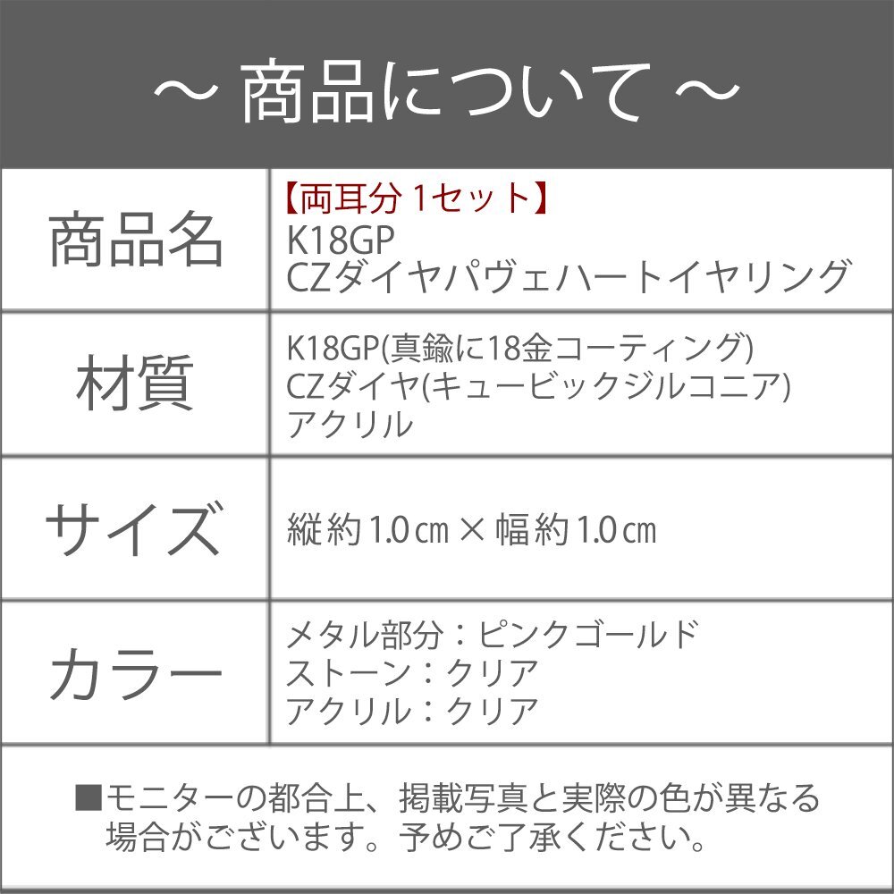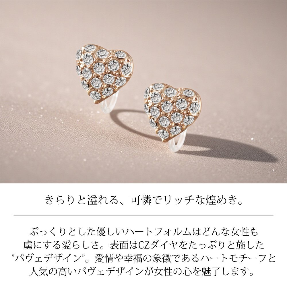 新品/イヤリング/K18GP/レディース/ハート/パヴェ/18金/18kコーティング/ピンクゴールド/小ぶり/ピアス見え/樹脂/金属アレルギー/ダイヤ/CZ