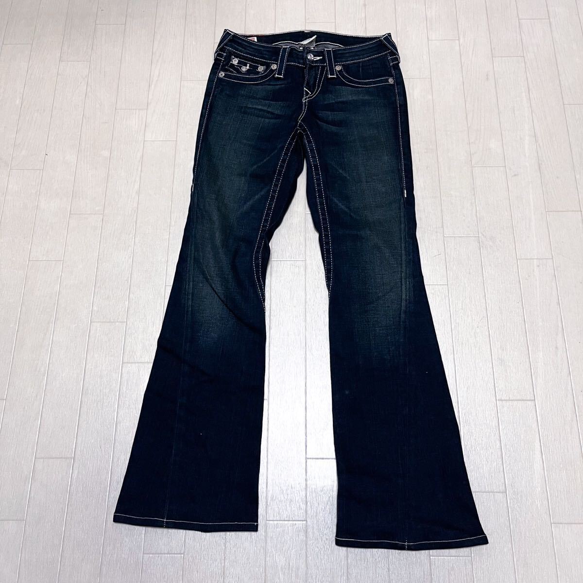 和853★① TRUE RELIGION JOEY トゥルーレリジョン デニムパンツ ジーンズ ブーツカット フレアデニム 26 濃紺 レディース USA製