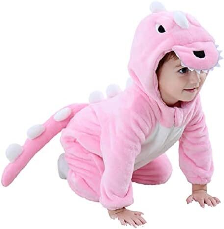 新品 子供用 恐竜 きぐるみ パジャマ つなぎ  ティラノサウルス コスプレ用着ぐるみ ハローイン 87cm ピンク