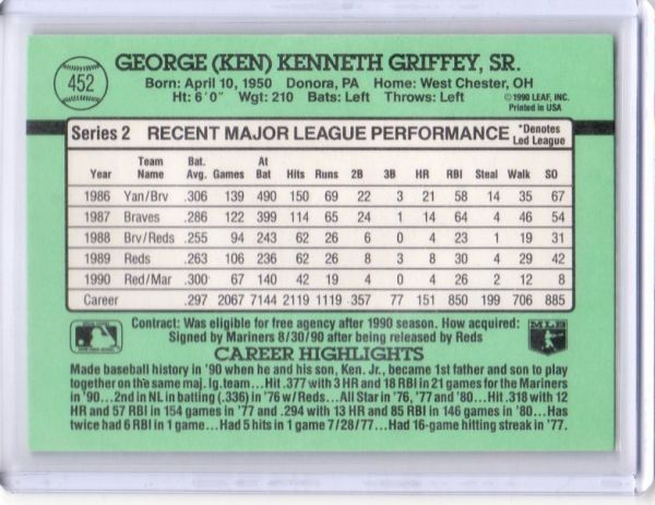 ★☆ケン・グリフィー父 カード Vol.52 1991DONRUSS #452☆★ | |