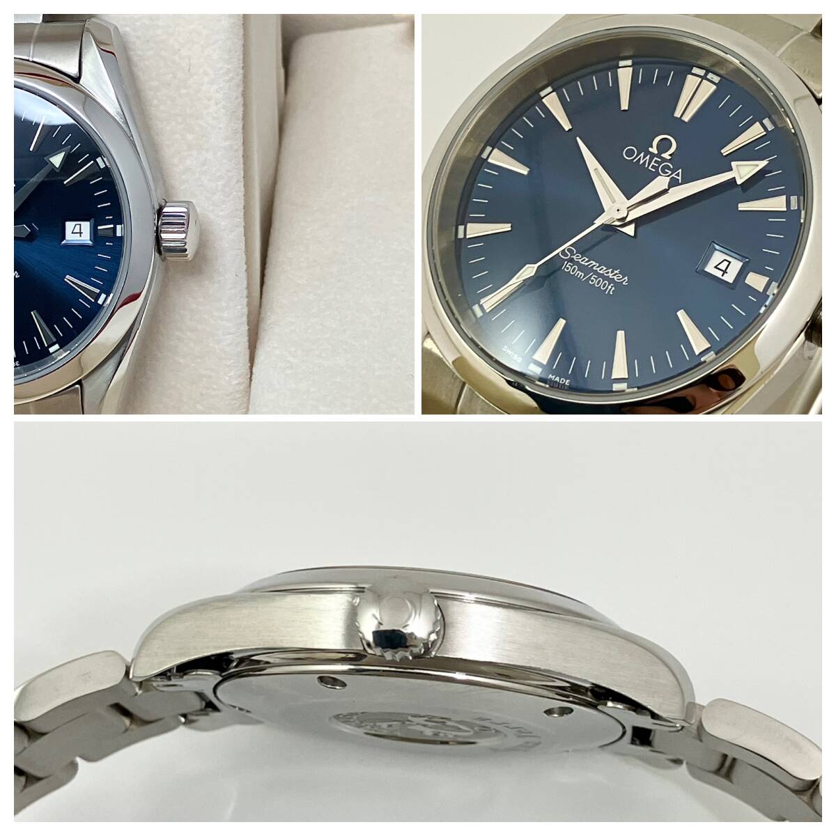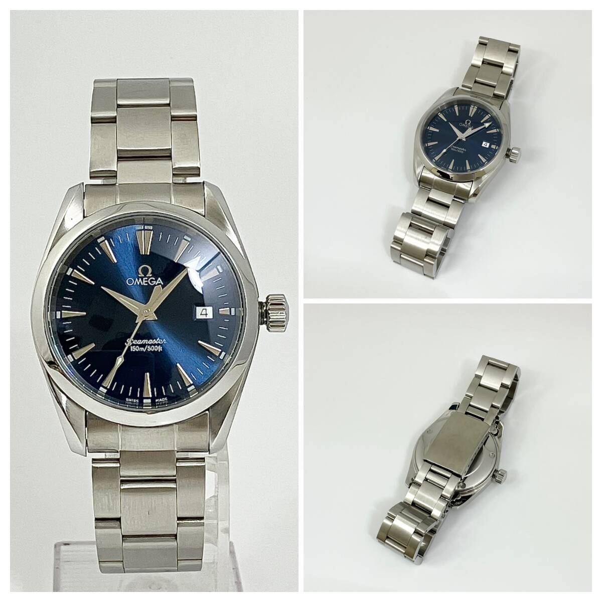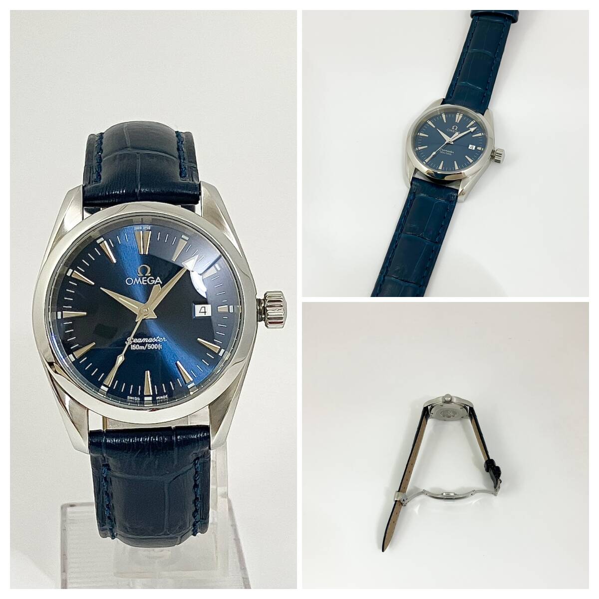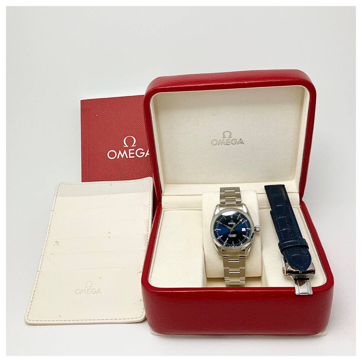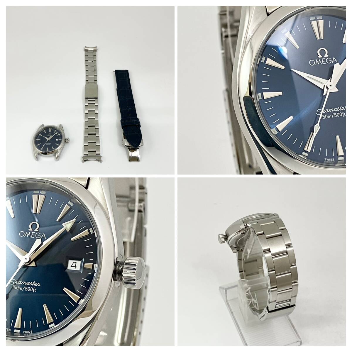 付属品、汎用ベルト2種付き☆極美品のオメガ・シーマスター時計☆アクアテラ・メンズ・ネイビー盤☆2518-80・電池交換済み☆
