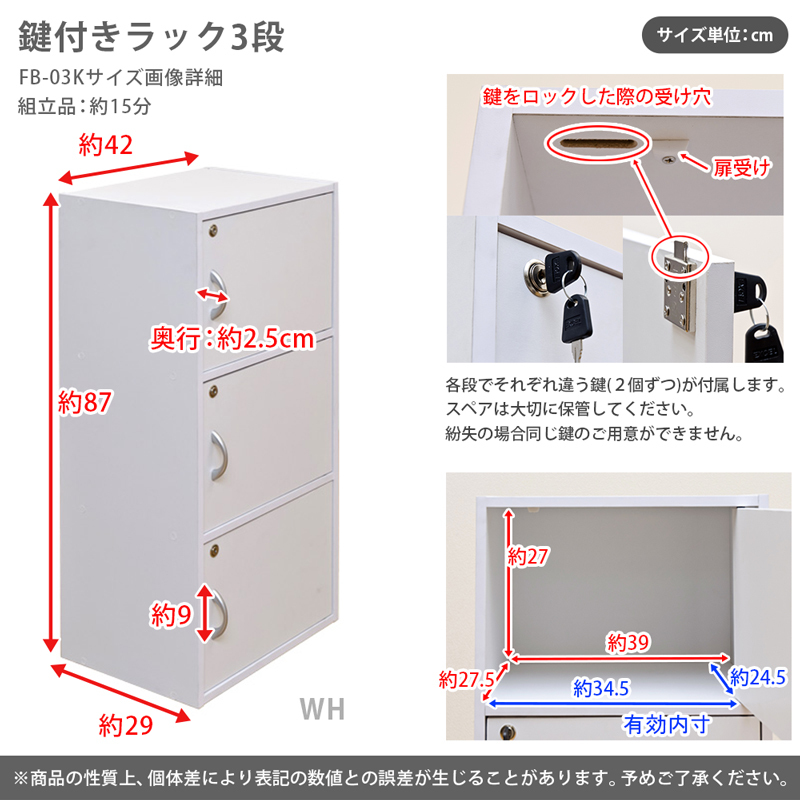 | 商品説明 | 組立品(15分) 扉付きでほこりや日焼けからガードできる優れもの! 各段ごとに施錠が可能! 雑誌や小物の収納、整理に便利!使いやすいラックで本棚や電話台にも。 格段ごとに閉じられる鍵付きラック3段。 大事な物の保管やプライベート保護に役立ちます。 ※1 鍵はスペアを含め2個ずつ付属。各棚ごとに異なるため大切に保管してください。 ※2 複数台お買い上げいただいた場合、鍵の種類は多数ございますが、 重複してしまう可能性もまれにございます。 状況によっては鍵部分の交換を承れない場合もございますので予めご了承ください。 |
