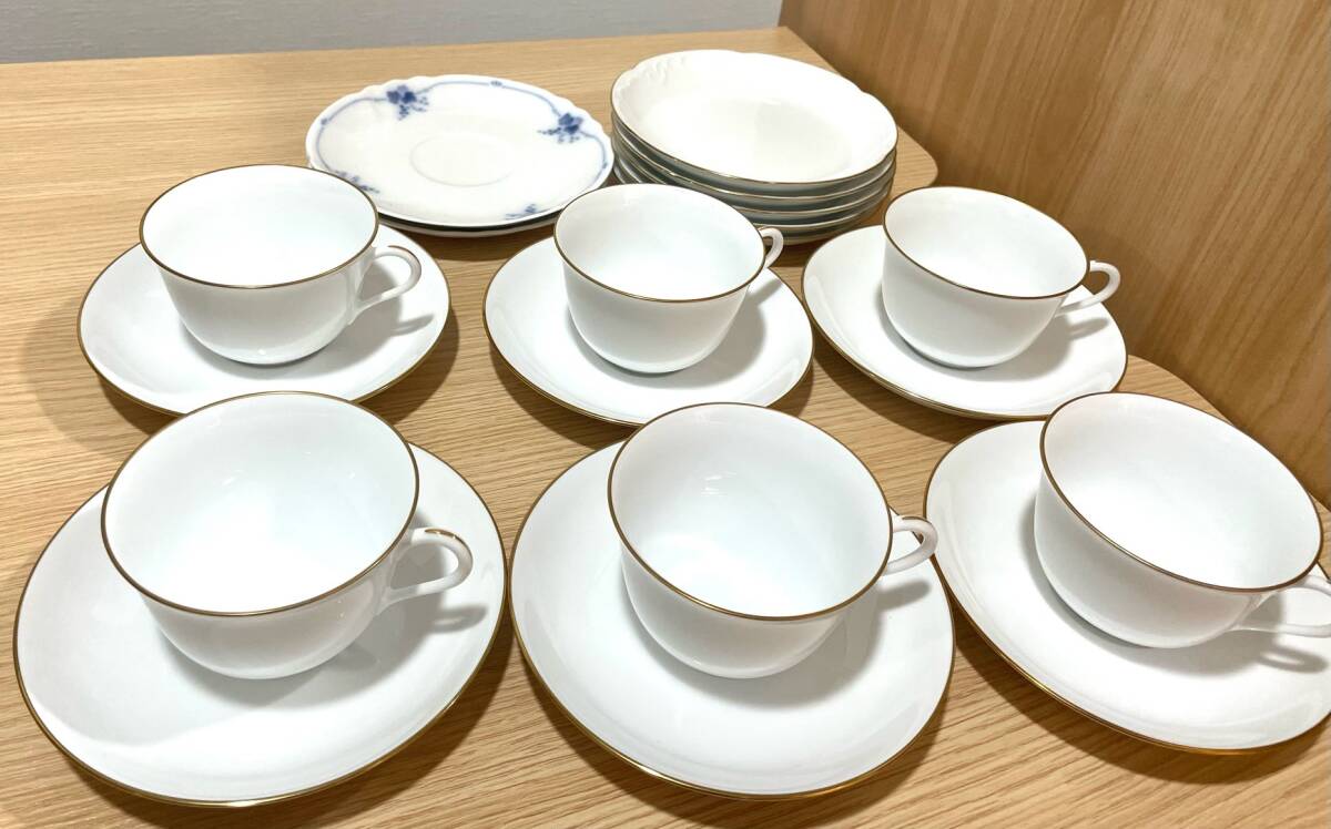 OKURA 大倉陶園 カップ&ソーサー6客 金彩 金縁 ケーキ皿4枚 青 ブルー 皿2枚 セット出品