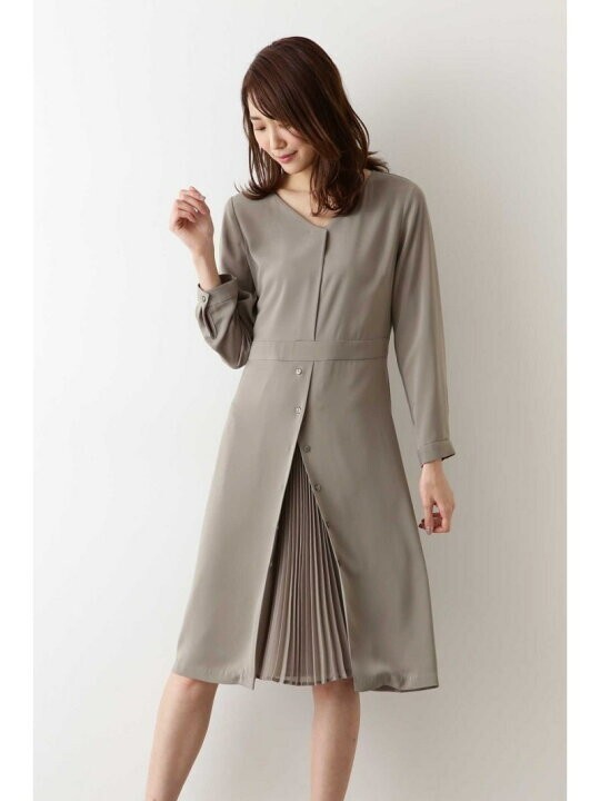 プリーツがレイヤードしたかのように見えるデザインワンピース。