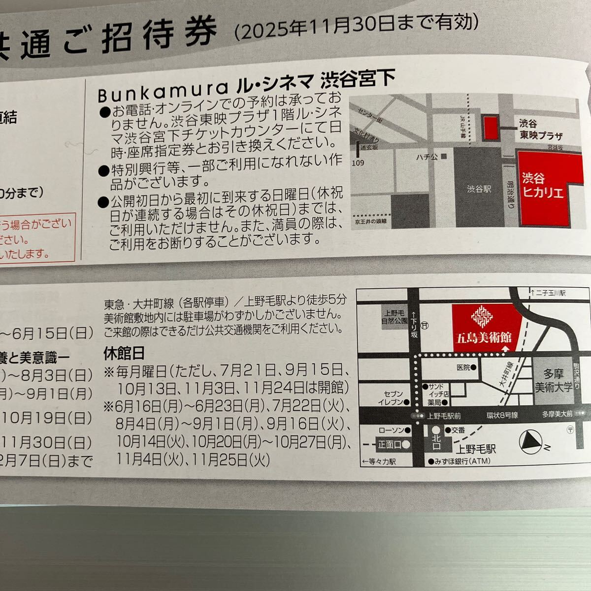 送料85円 ●2枚セット●Bunkamuraザ・ミュージアム ル・シネマ渋谷宮下 五島美術館( 2025年11月末迄)