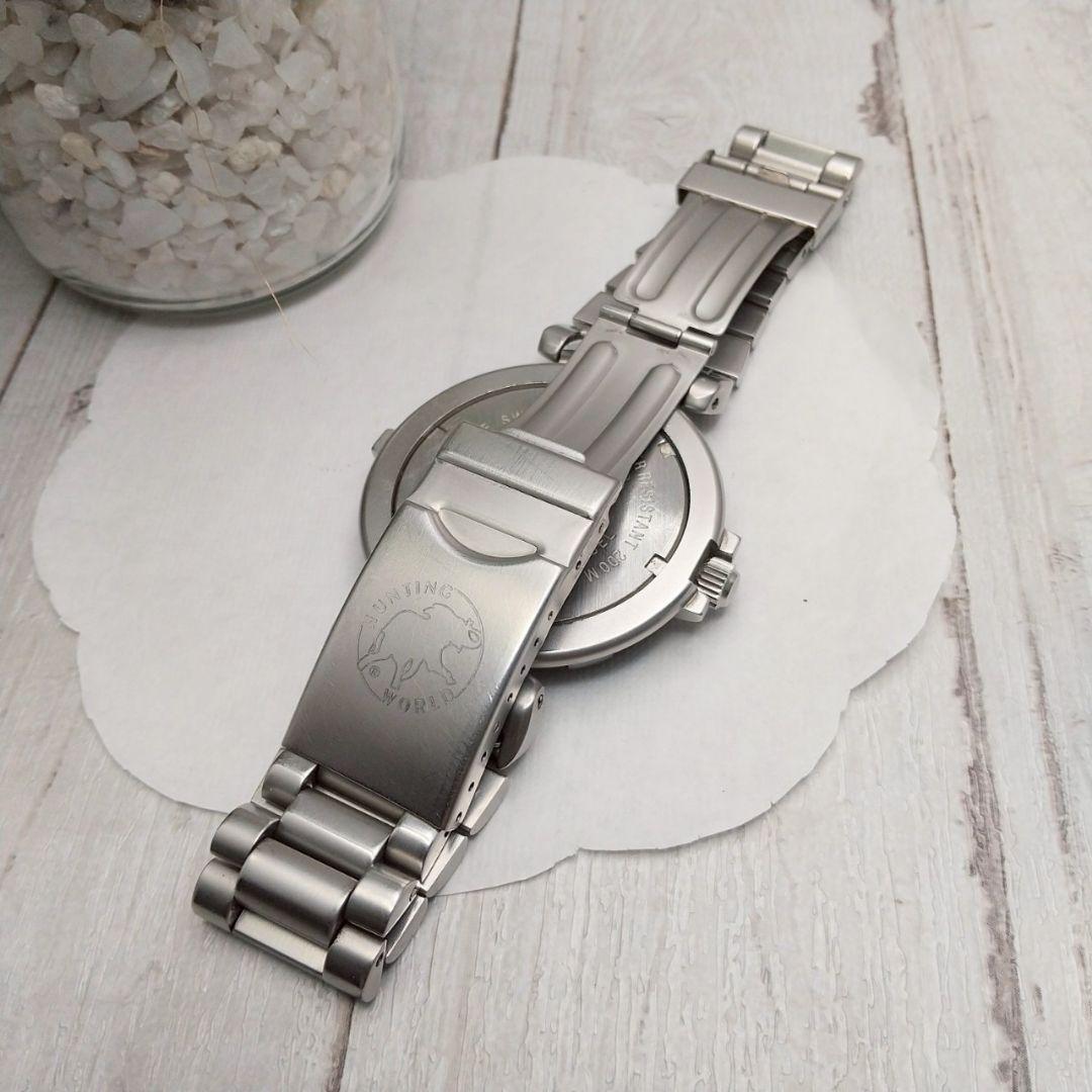 20気圧防水機能で、リューズはネジ込み式のため、ネジを緩めてからリューズを引いて時間調整をしてください。