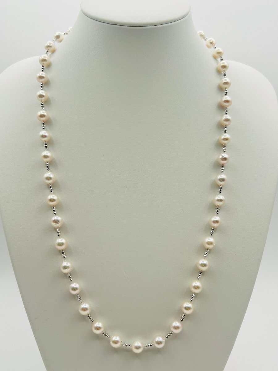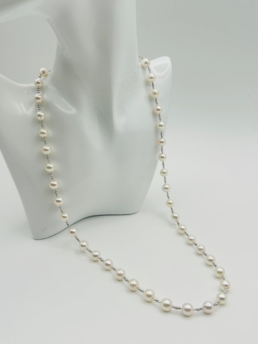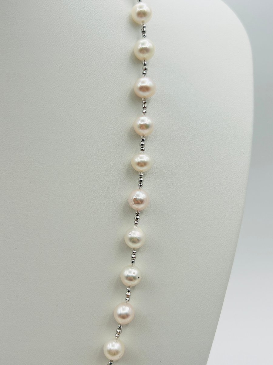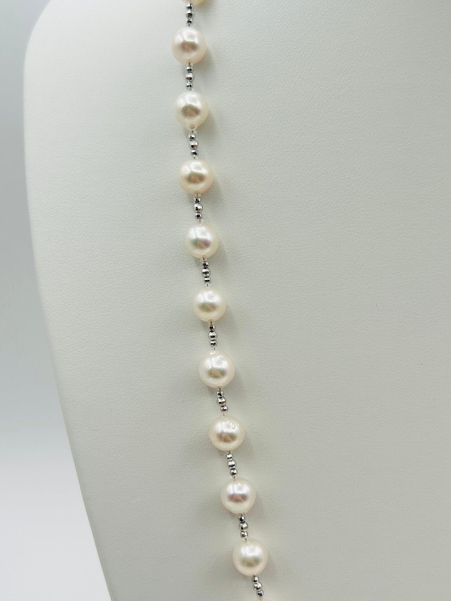 アコヤパールの8.5-9.0mmを使ったステーションネックレスです。 クリップクラスプを使った2WAYでロングで使用または6枚目のようなY字の形でのご使用もおすすめです。 アコヤパールに花型のパーツを合わせた存在感が抜群の商品です。 カジュアルで普段使いに便利なネックレスです。お求めやすい価格で出品いたします。 現品限りのお値打ち価格でご提案いたします! |