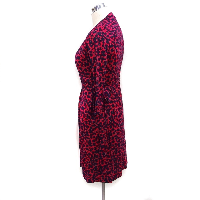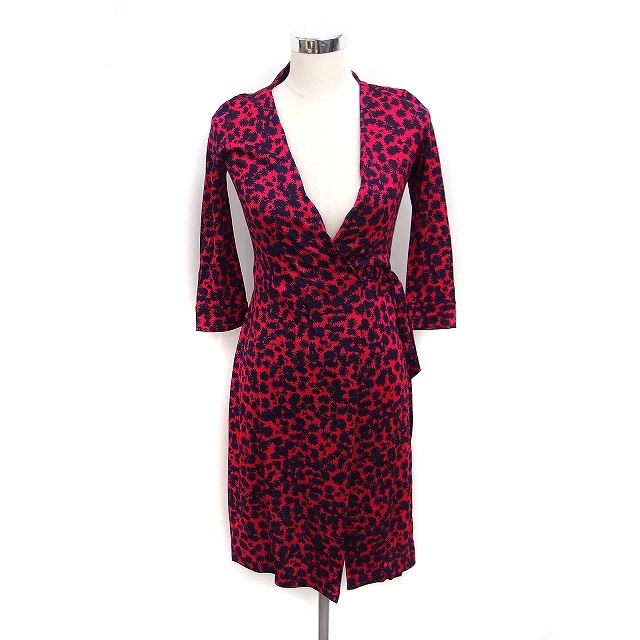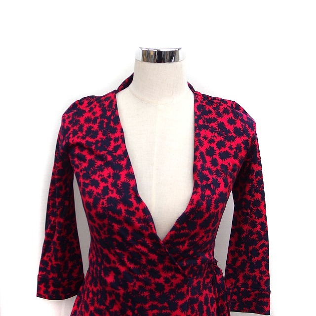 ダイアンフォンファステンバーグ DIANE von FURSTENBERG シルク カシュクール ワンピース 7分袖 ロング 花柄 0 ピンク 紺 /FT10 レディース