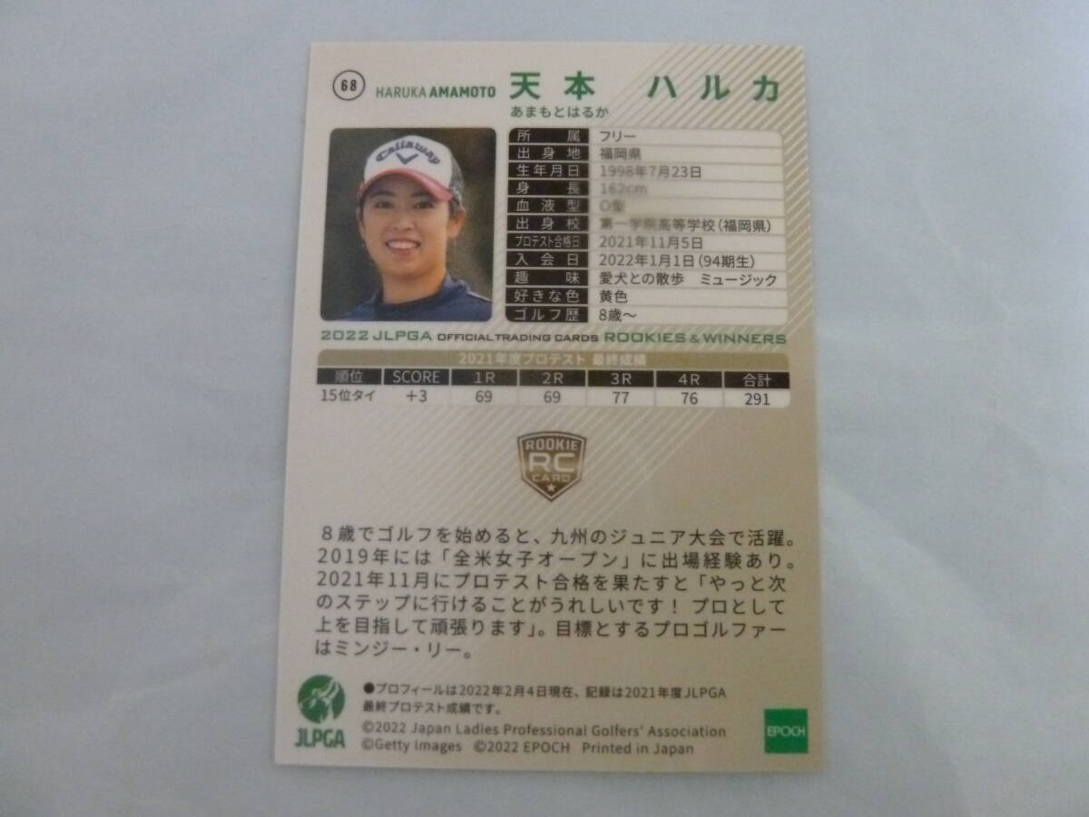 女子プロゴルフ 天本ハルカ プロ 直筆サイン入り2022 JLPGAオフィシャルトレーディングカード ROOKIES&WINNERS 激レア JLPGA ラスト1品!