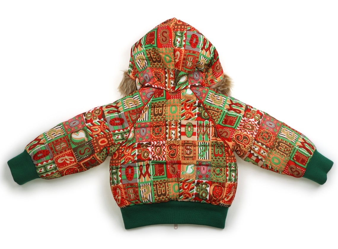 ポリエステル素材。詰め物はダウンフェザー。フードとフェイクファーは取り外し可能です。フードの首元に薄い汚れがありますがまだお使いいただけそうです。