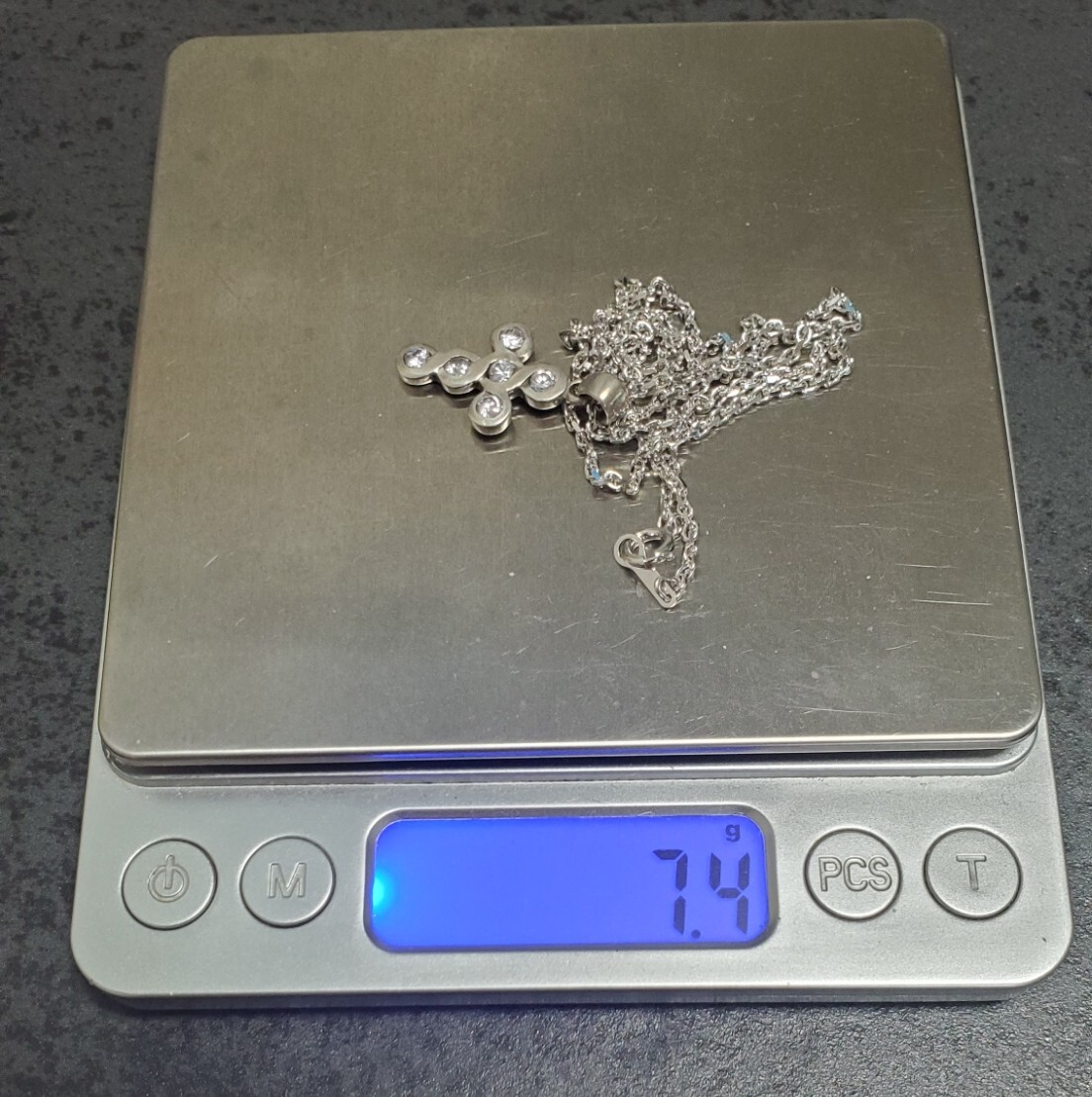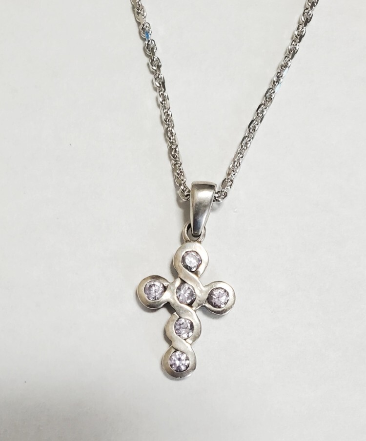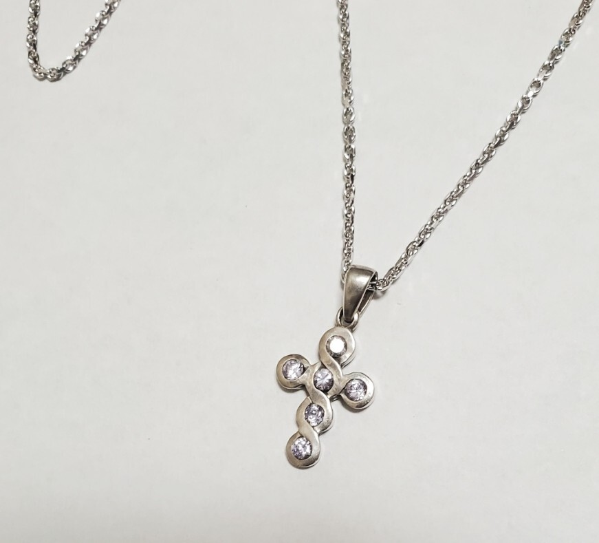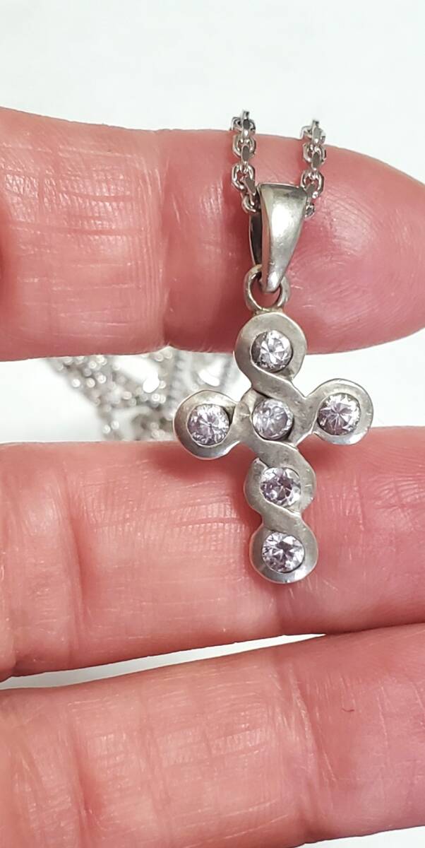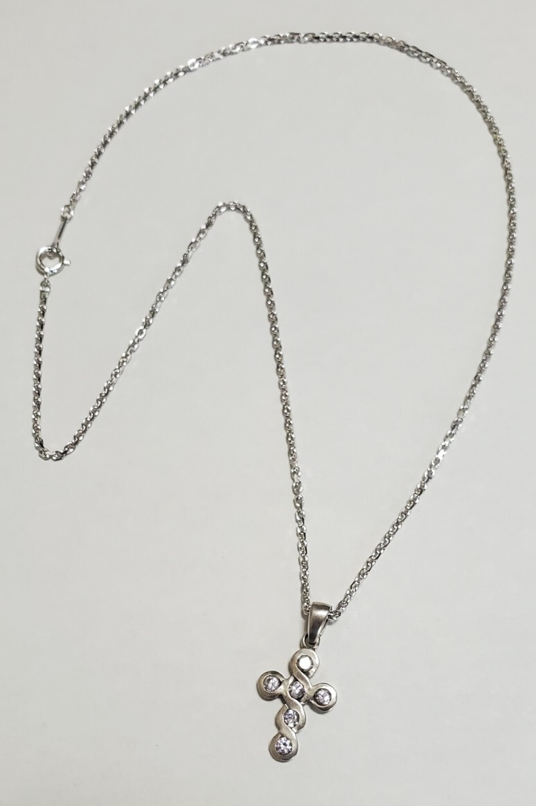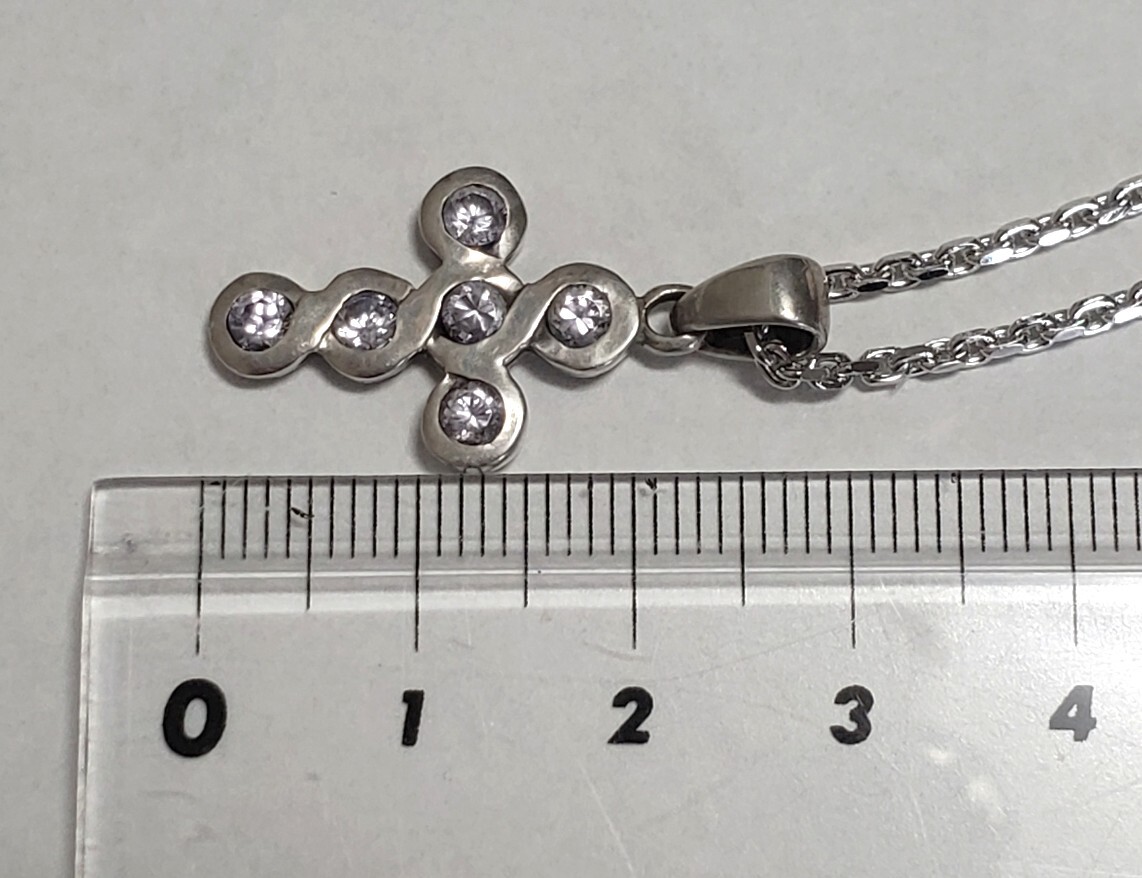SILVER 925 シルバー925刻印  キュービックジルコニア ペンダントトップ ネックレス レディース  45㎝  7,4g  美品