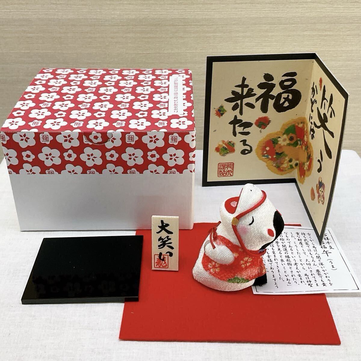 ちりめん 干支飾り 【大笑い 午(立)屏風付き】新品、未使用品 写真画像2枚目のデザインのお品をお届けします。