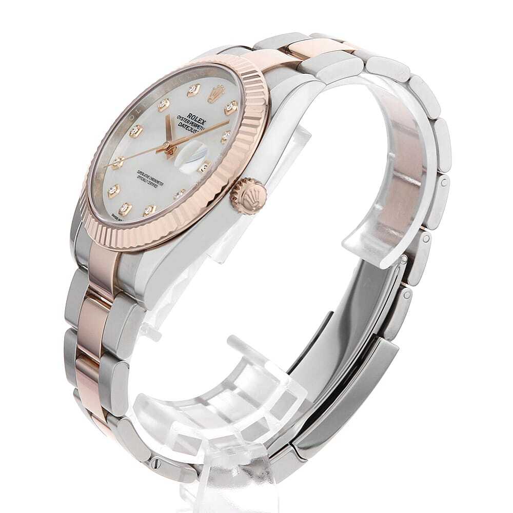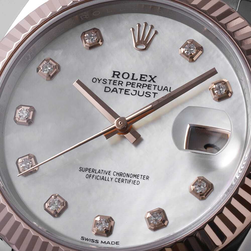 モデル情報 | 1945年に誕生し、今やロレックスの顔とも言える"デイトジャスト"。ロレックスの三大機構(オイスターケース、パーペチュアル機構、デイトジャスト機構)を全て備えたモデルです。ダイアル色・ケース素材などの組み合わせは多岐に渡り、非常に多彩なバリエーションが存在するのが最大の魅力です。 |