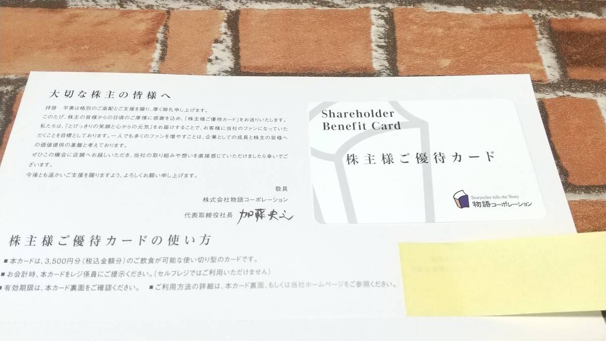 物語コーポレーション 株主様ご優待カード 3500円分