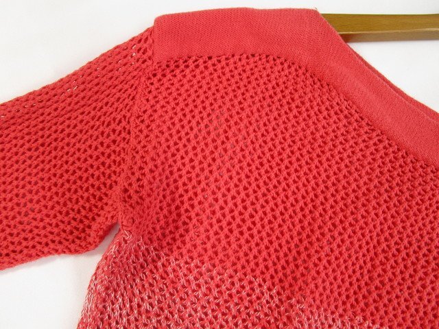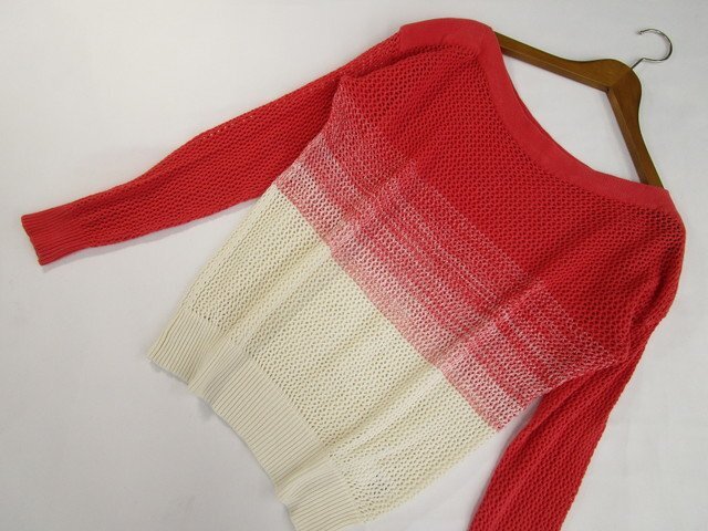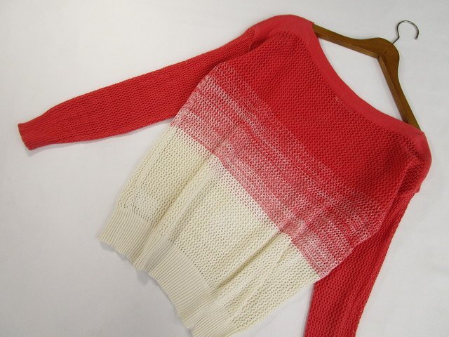 ドロップショルダー 長袖 ボートネック 洗えるニットセーター L オレンジ×オフホワイト