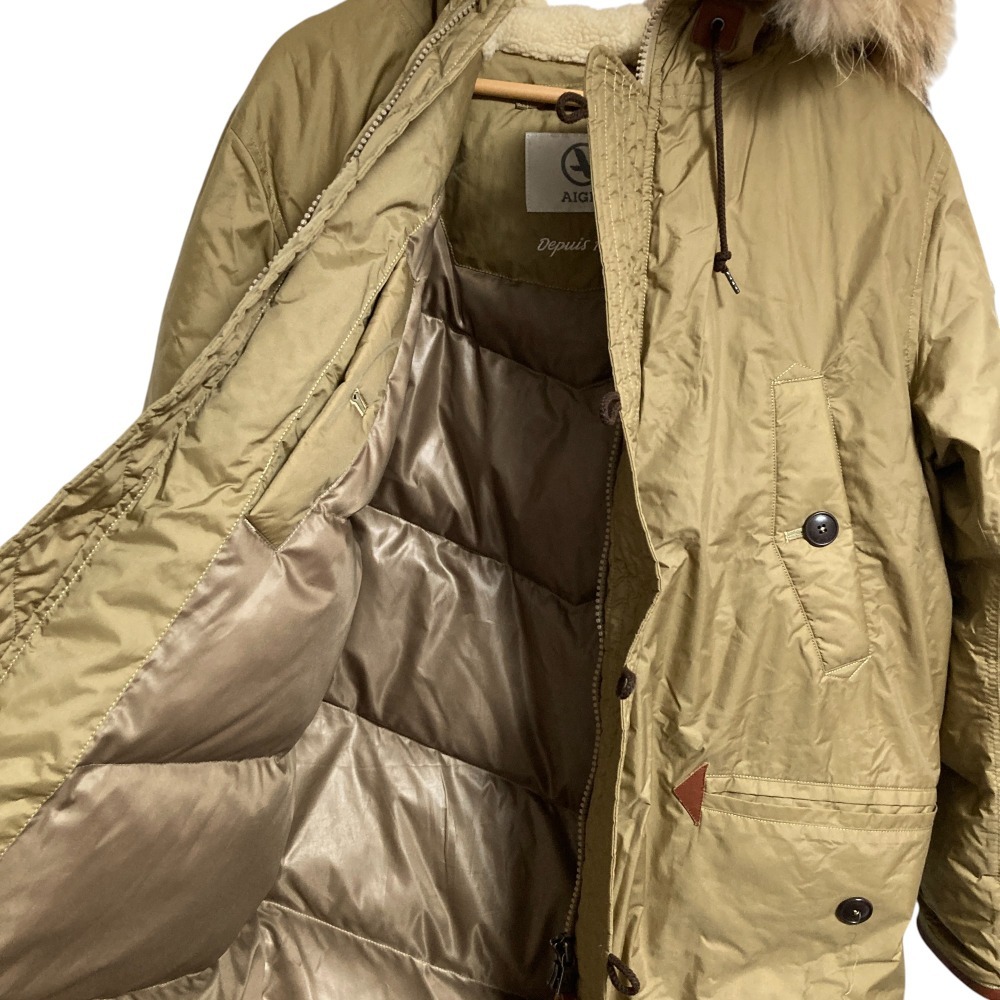 商品名:AIGLE エーグル ナイロン ラクーンファー フーデッド ダウンコート ジャケット M カーキ