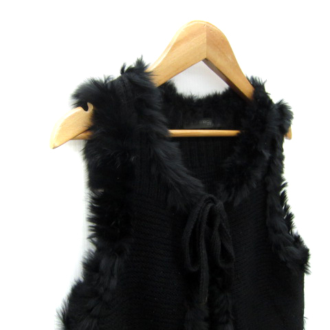 イミット オブ エナジー レイビームス ニットベスト ショート丈 無地 ラビットファー 黒 ブラック /SY9 レディース