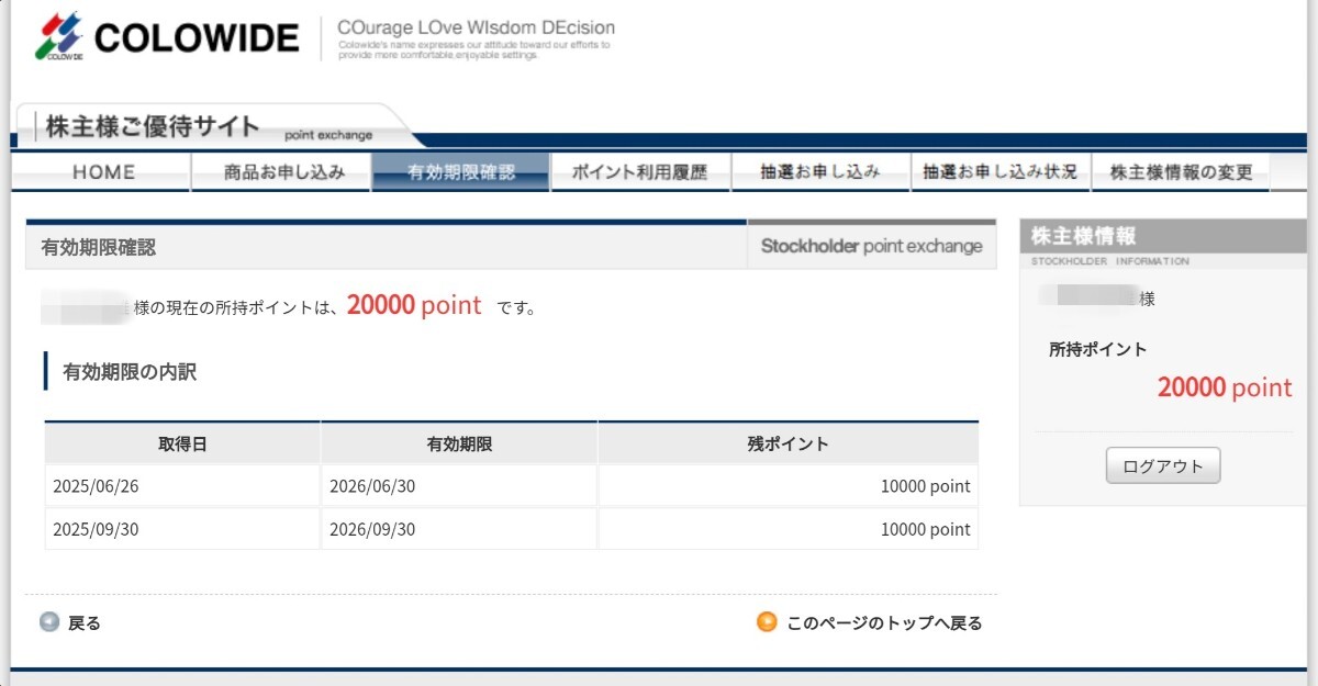 有効期限:2026年6月30日まで10000ポイント、2026年9月30日まで10000ポイント