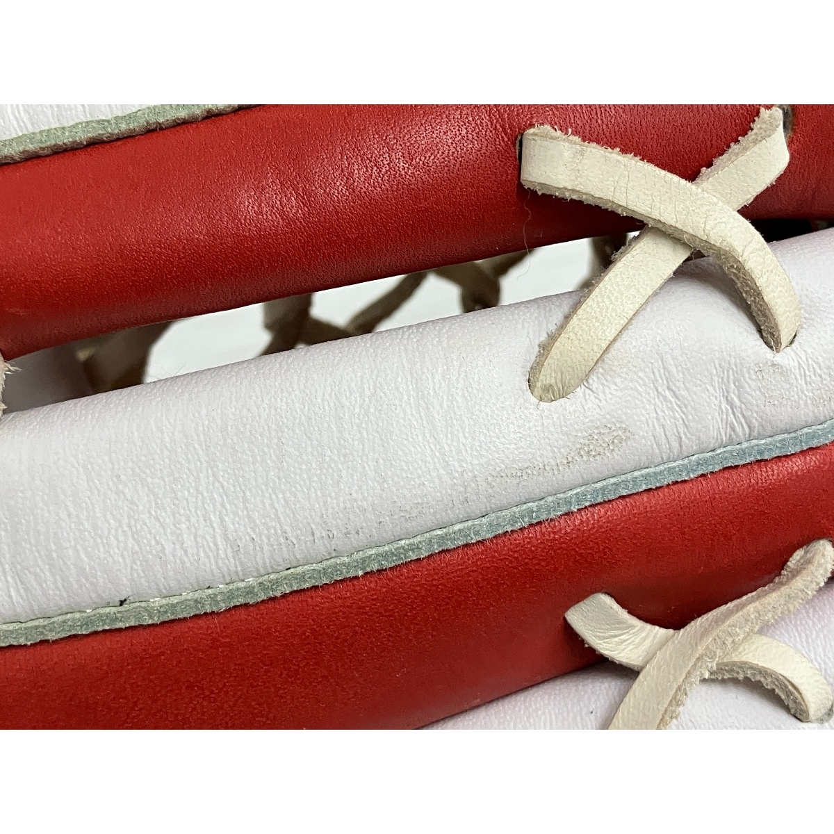 | 【初期動作保証】 ReReでは商品説明や画像では確認できない不備や破損が見られた場合は、 商品到着(お引渡し)日を含んだ7日以内に取引メッセージよりご連絡いただけますと 速やかに返品返金対応致しますので、安心してご購入頂けます。 【商品について】 猛虎のスピードスター、レッドスターこと赤星憲広選手のモデルが入荷しました! 5年連続盗塁王、6度のゴールデングラブ賞に輝いた名選手の広い守備範囲を支えた、 こだわりの設計が光る逸品です。 外野手用としてやや小ぶりで扱いやすく、深いポケットがフライの確実なキャッチをサポート。 赤星選手の代名詞である俊足で打球に追いつき、捕球から素早い送球に移る、 そんなスピーディーな外野守備を目指すプレーヤーに最適なグローブです。 阪神タイガースファン、赤星ファンならずとも手に入れたい、伝説のモデルをこの機会にぜひ! 【状態について】 使用や保管に伴い使用感が見受けられます。 【付属品】 本体のみ ※付属品に関しては画像にてご確認いただけるものが全てとなっております。 ※一部商品は在庫自動連携しているため、ご購入後に在庫がない場合がございます。 ご了承の上、ご購入くださいませ。 |