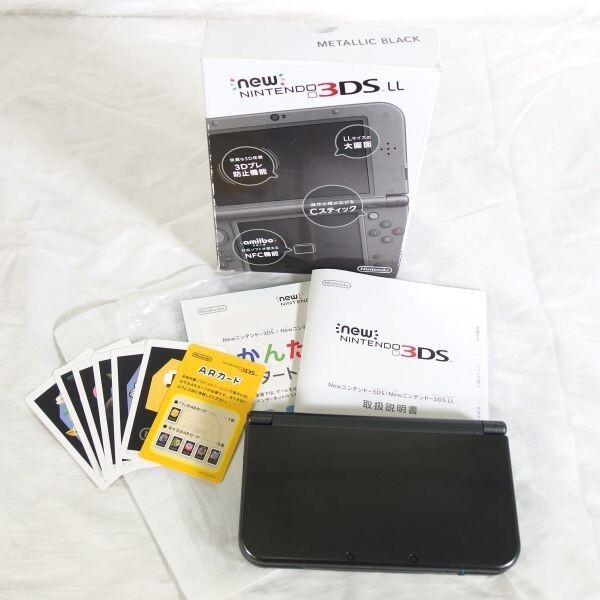 【簡易動作確認済/初期化済】Nintendo ニンテンドー New 3DS LL RED-001 メタリック ブラック 箱付き ゲーム機 本体/60サイズ