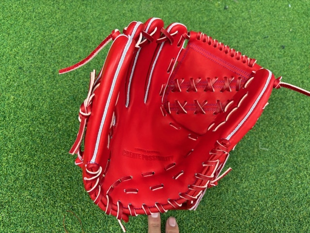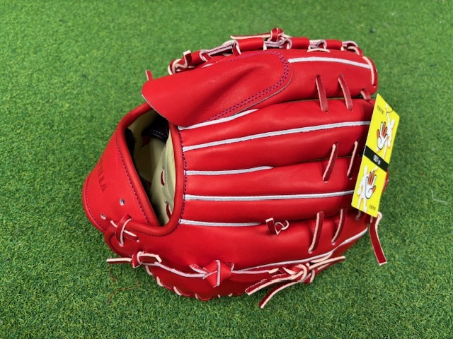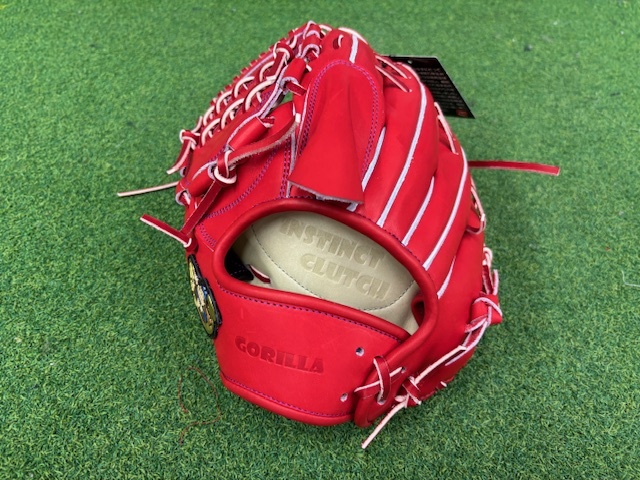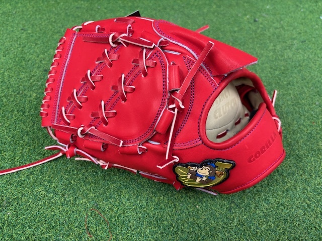 ごりら印の野球道具 硬式投手用 左投げ用 001型 別注カラー 赤オレンジ 左投げ 新品未使用品 グローブ袋・箱付き