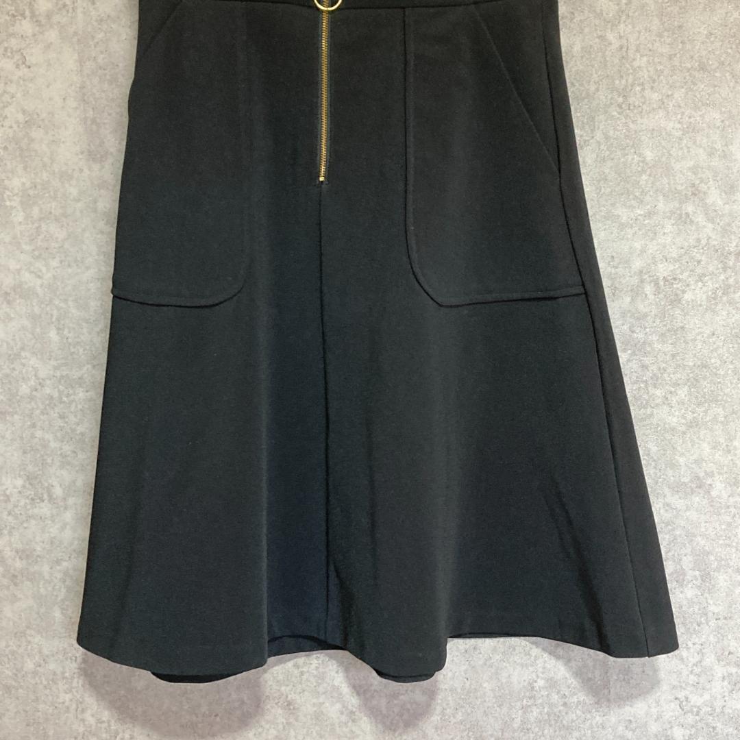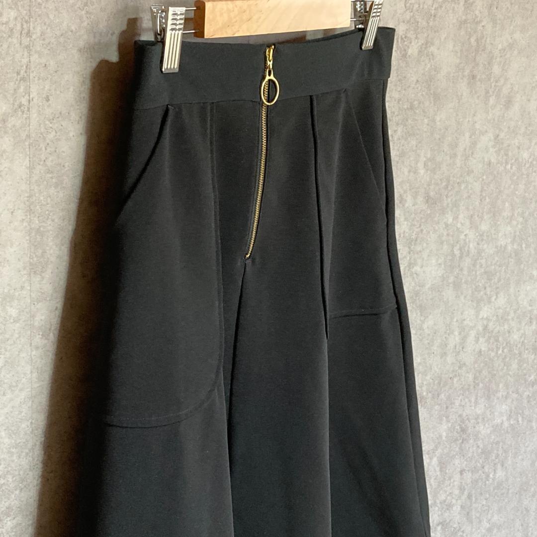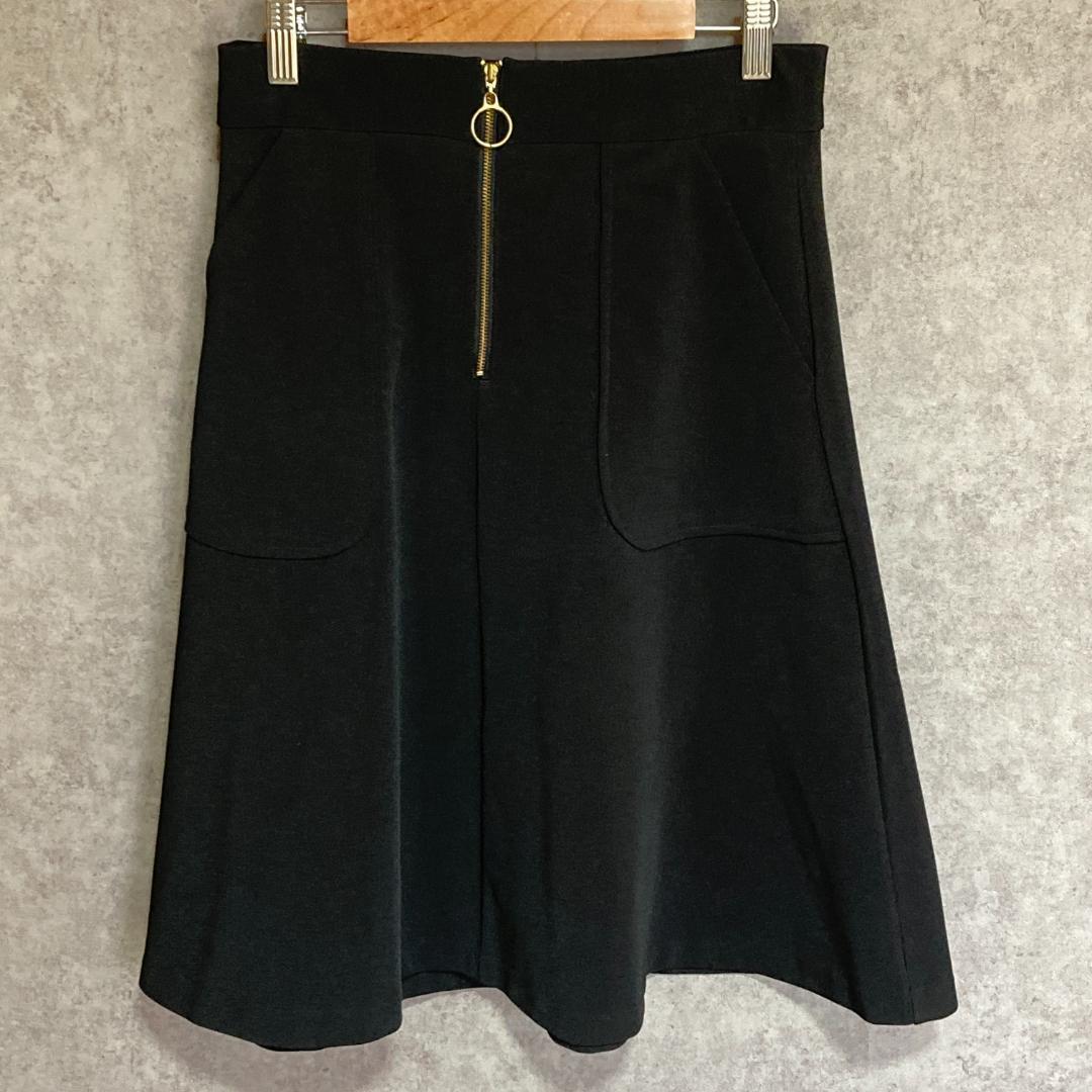 【GU】ジーユー(L)フロントジップアップフレアスカート*ストレッチ*ブラック
