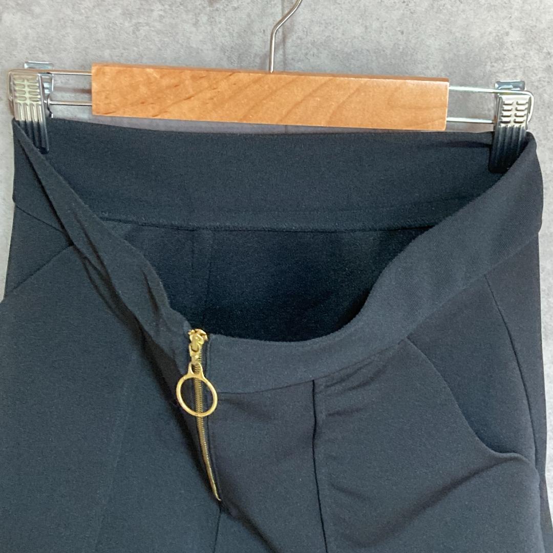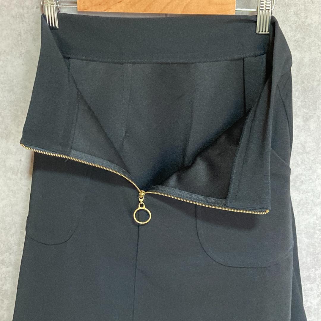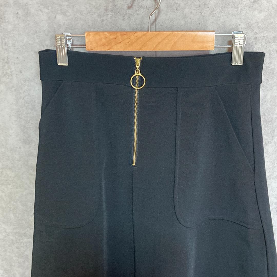 【GU】ジーユー(L)フロントジップアップフレアスカート*ストレッチ*ブラック