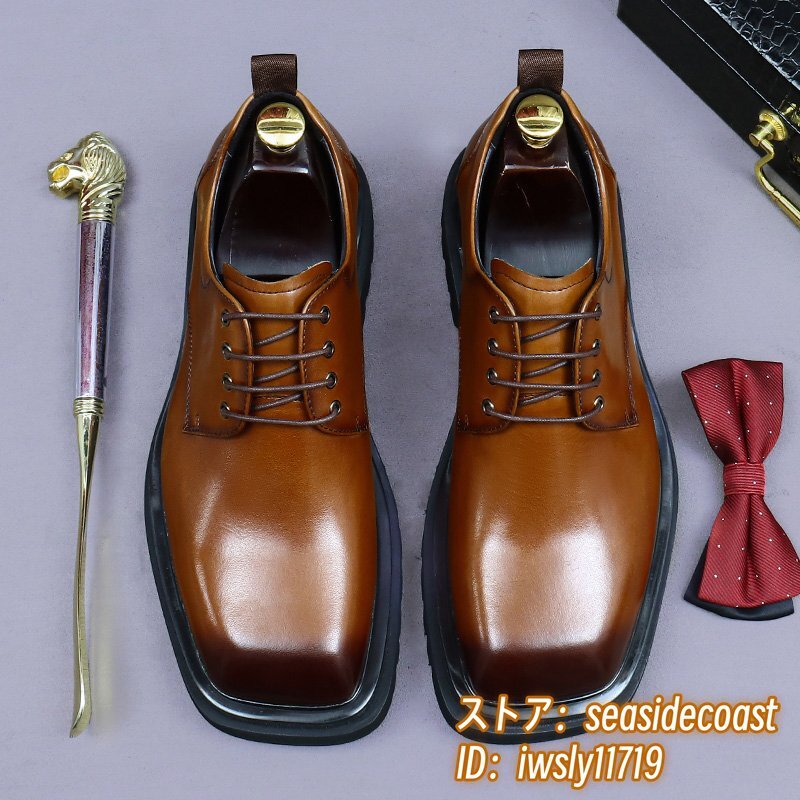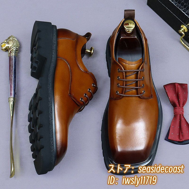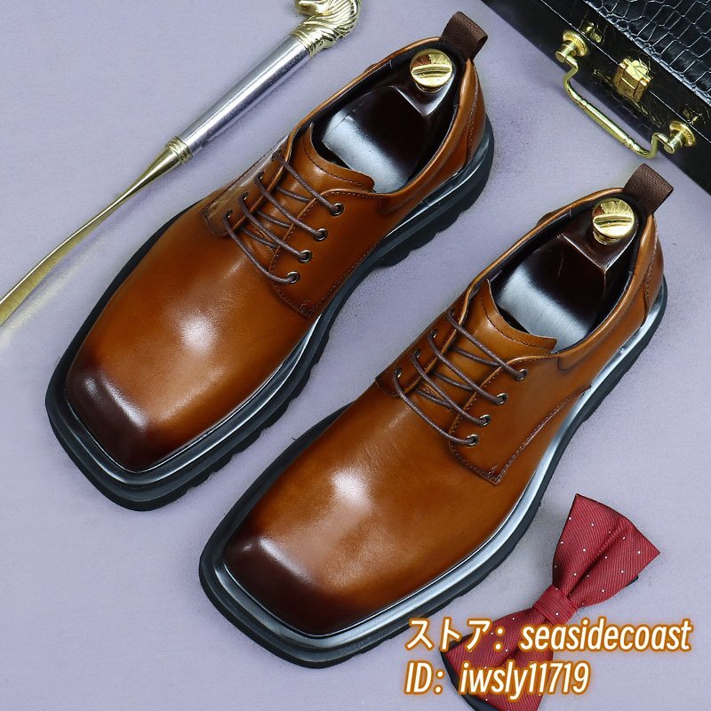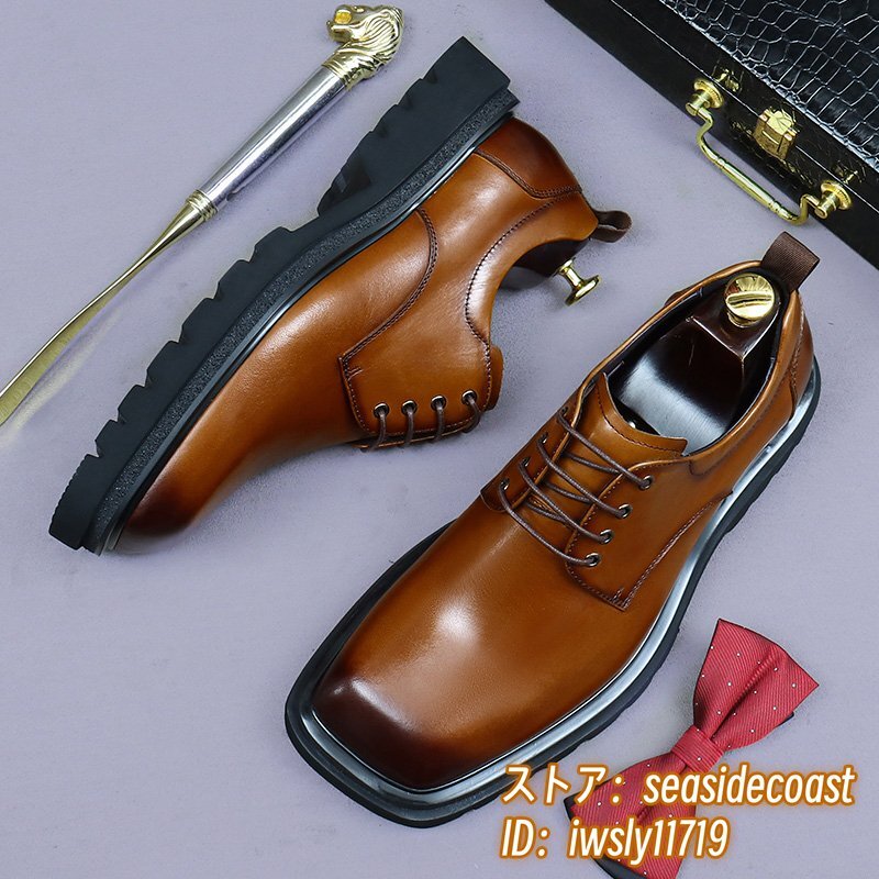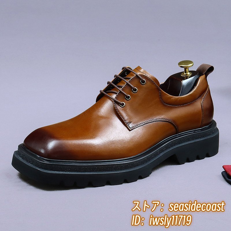 最上級■定価12万 本革 ローファー スリッポン 職人手作り 厚底 ビジネスシューズ レザーシューズ 高級牛革 紳士靴 革靴 ブラウン 26.0cm