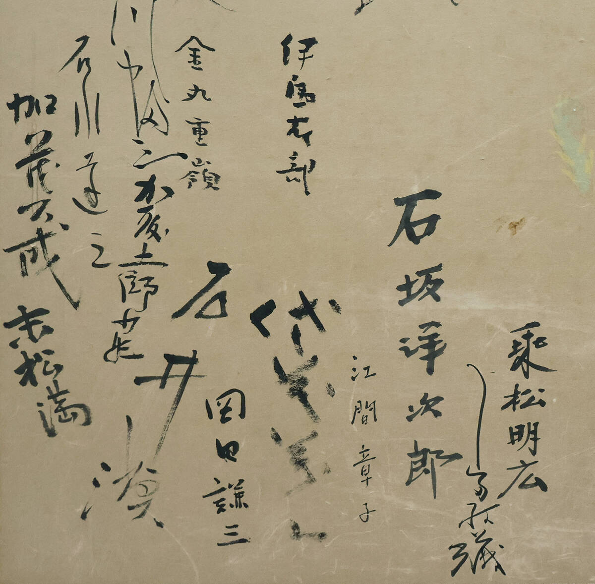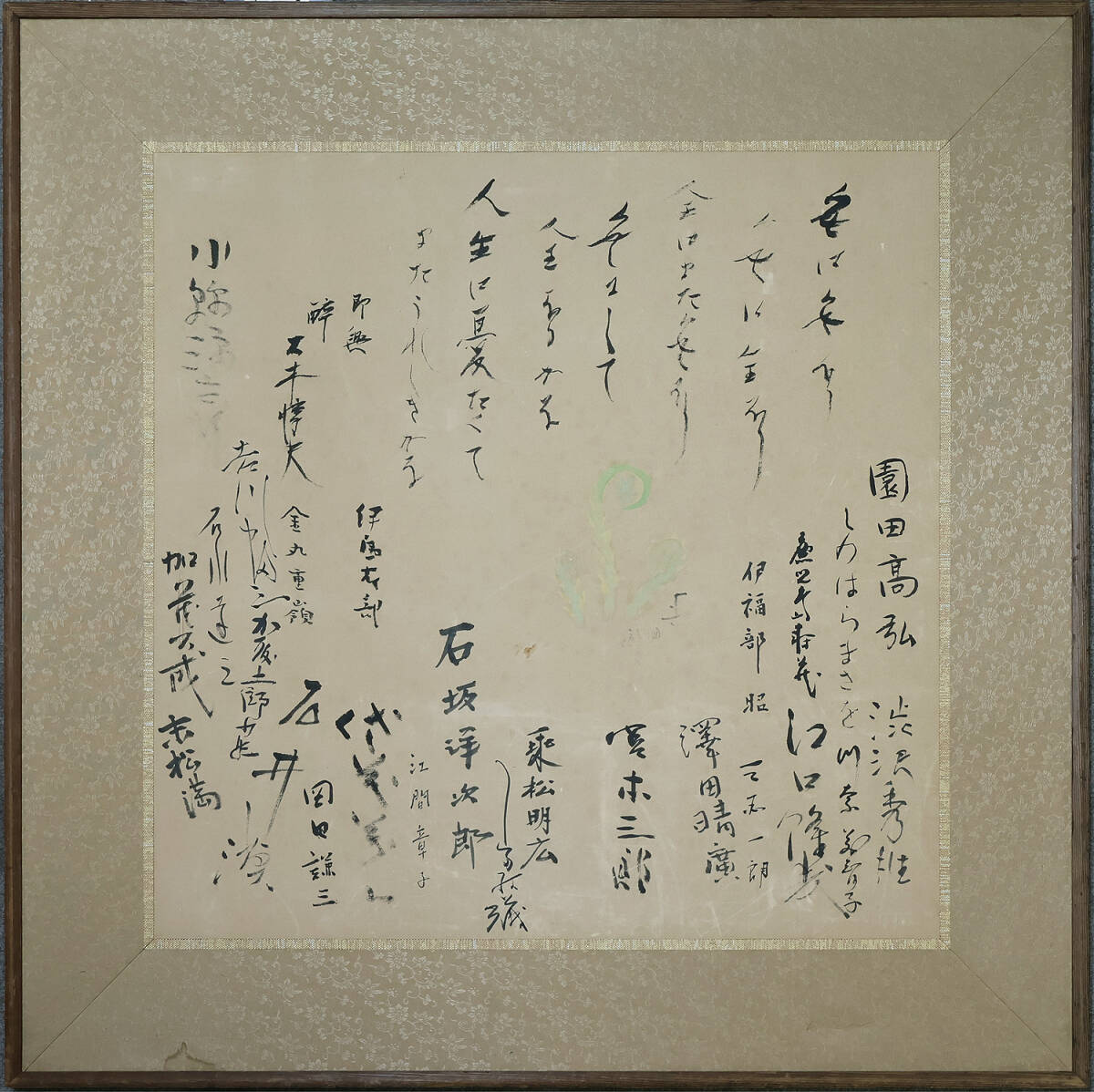 技法:紙に墨等 画面サイズ:67×67㎝ 額サイズ:93×93㎝ コンディション:ヤケ・シミ等あります。 |