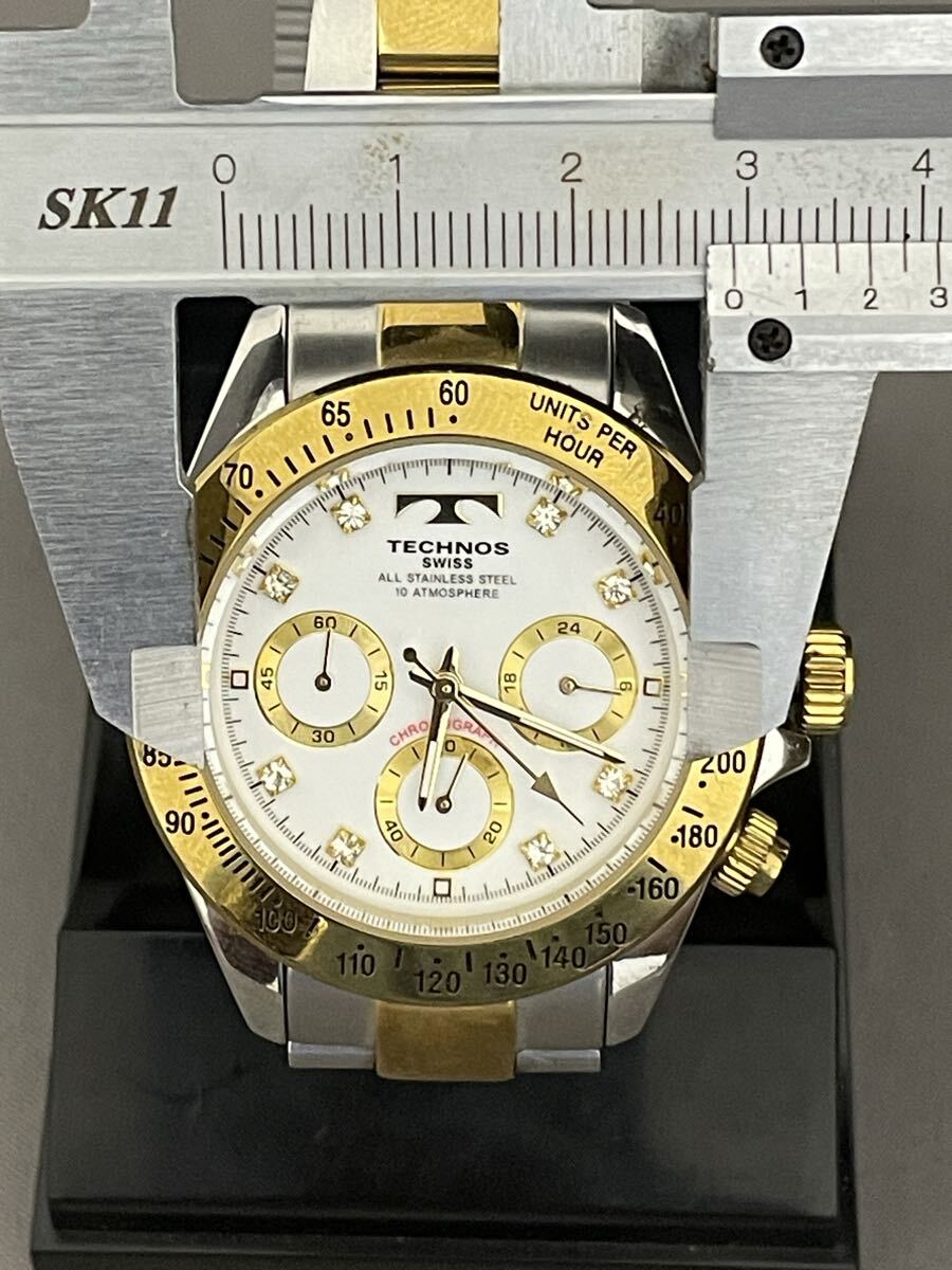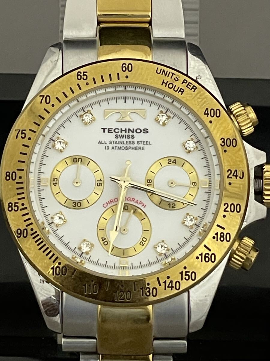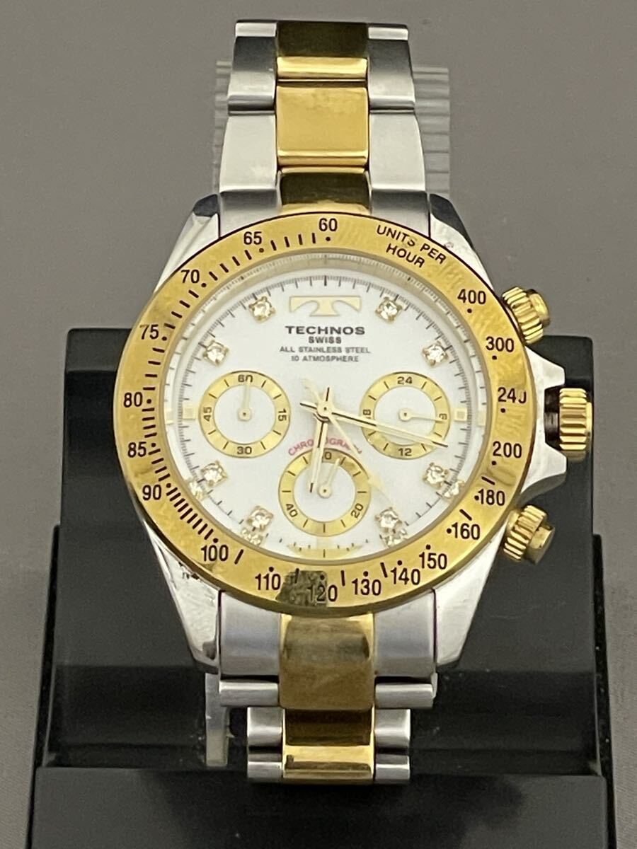 TECHNOS テクノス クォーツ クロノグラフメンズ腕時計です。時計動いていますが詳しく動作確認してないためジャンク品扱いでお願いします。ノウクレームノウリターンでお願いします。