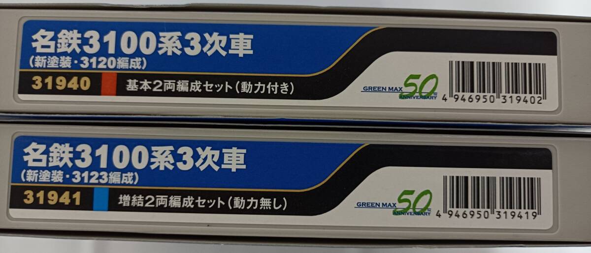 | △K083-74 名鉄3100系 3次車 新塗装・3120編成 基本2両編成セット 31940 動力付き 3123編成 増結2両編成セット 動力無し 31941 まとめ | ||