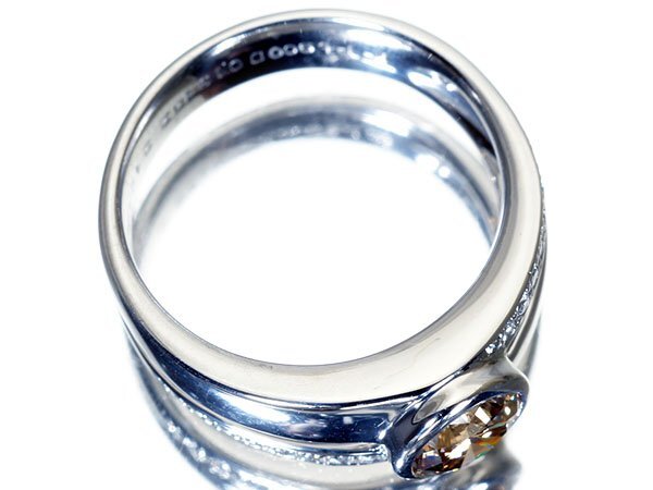 1円~【ジュエリー極】POLA 極上品 超大粒極上天然1粒ブラウンダイヤモンド1.02ct&脇ダイヤ0.13ct 超高級Pt900リング k775rg【送料無料】