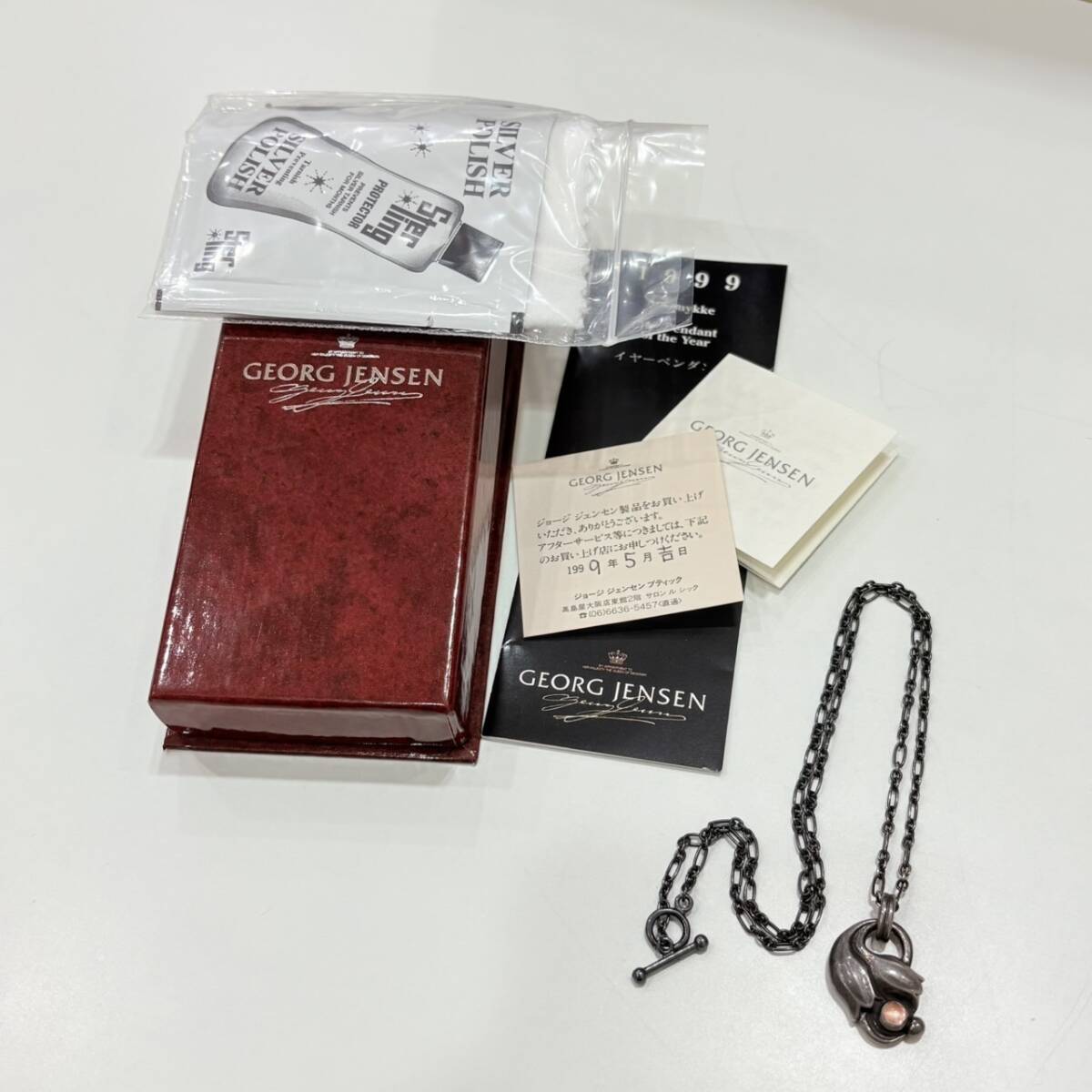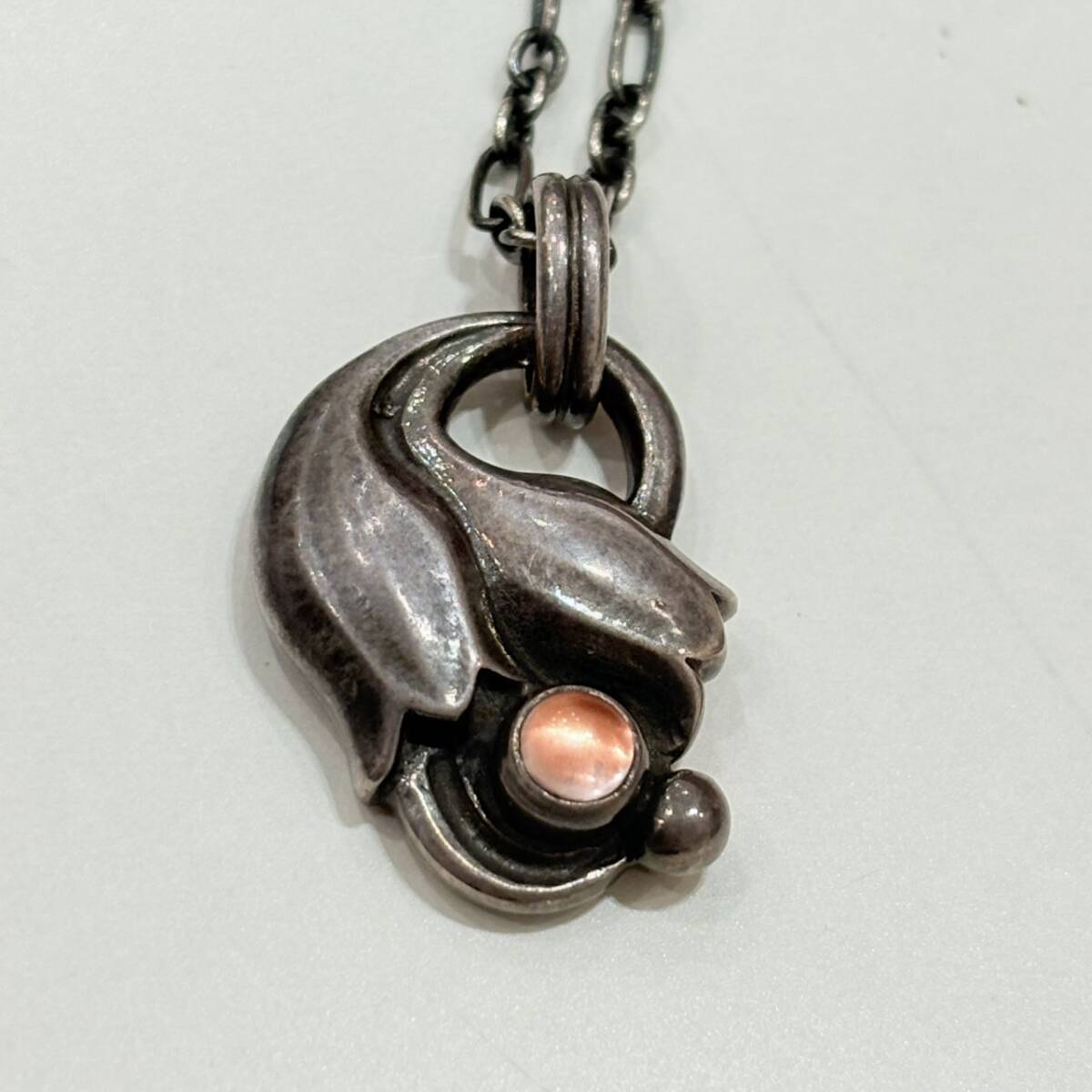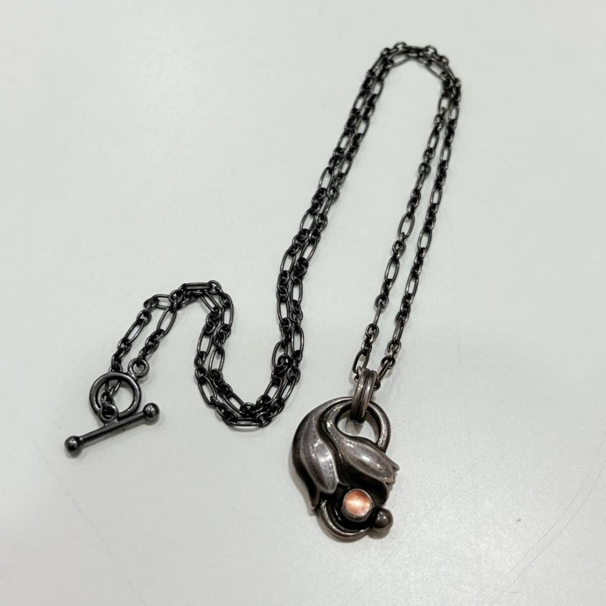 GEORG JENSEN ジョージ・ジェンセン 1999年 イヤー ペンダント トップ 色石 男女兼用 ネックレス 花 モチーフ 外箱 クロス付き 2397