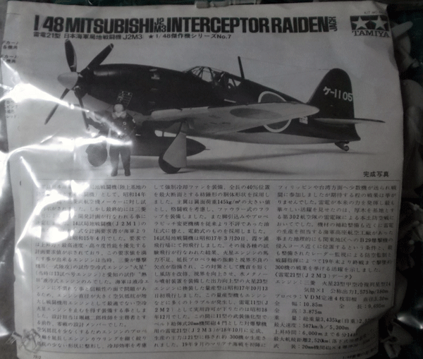 タミヤ/1/48/日本帝国海軍三菱J2M3雷電局地戦闘機/未組立品/外箱欠1