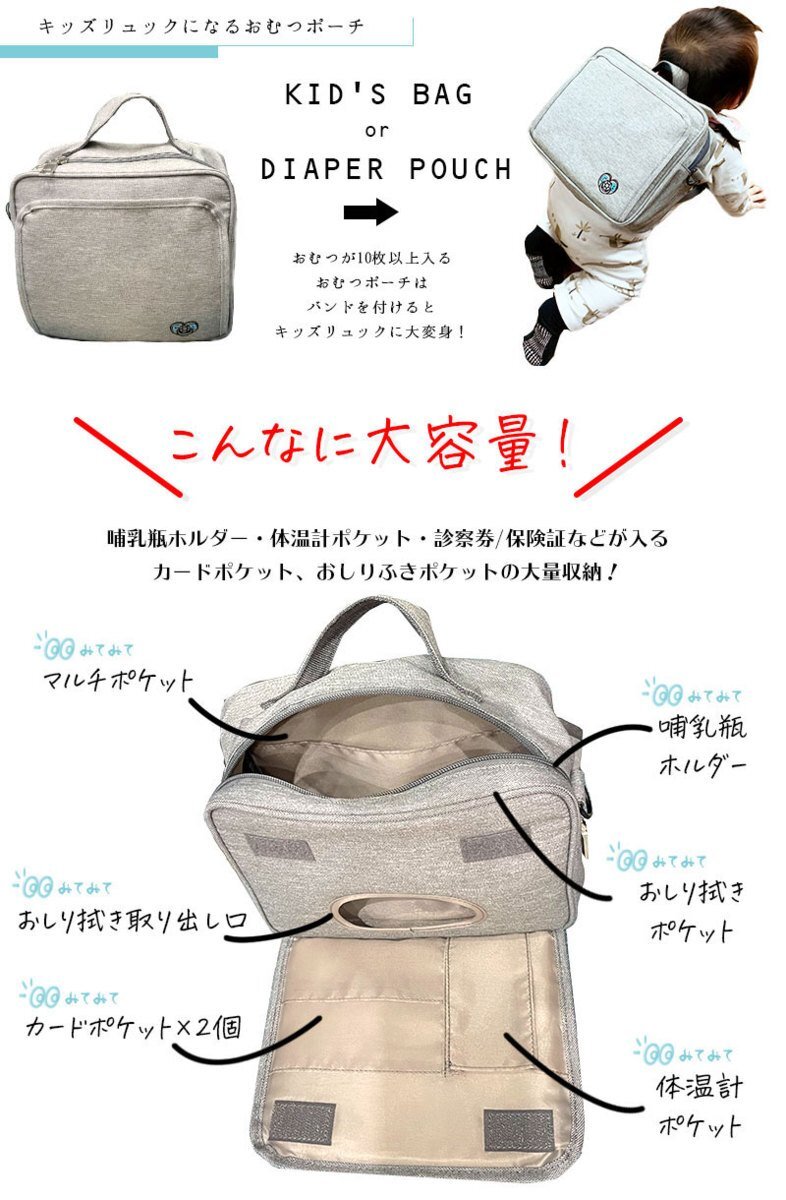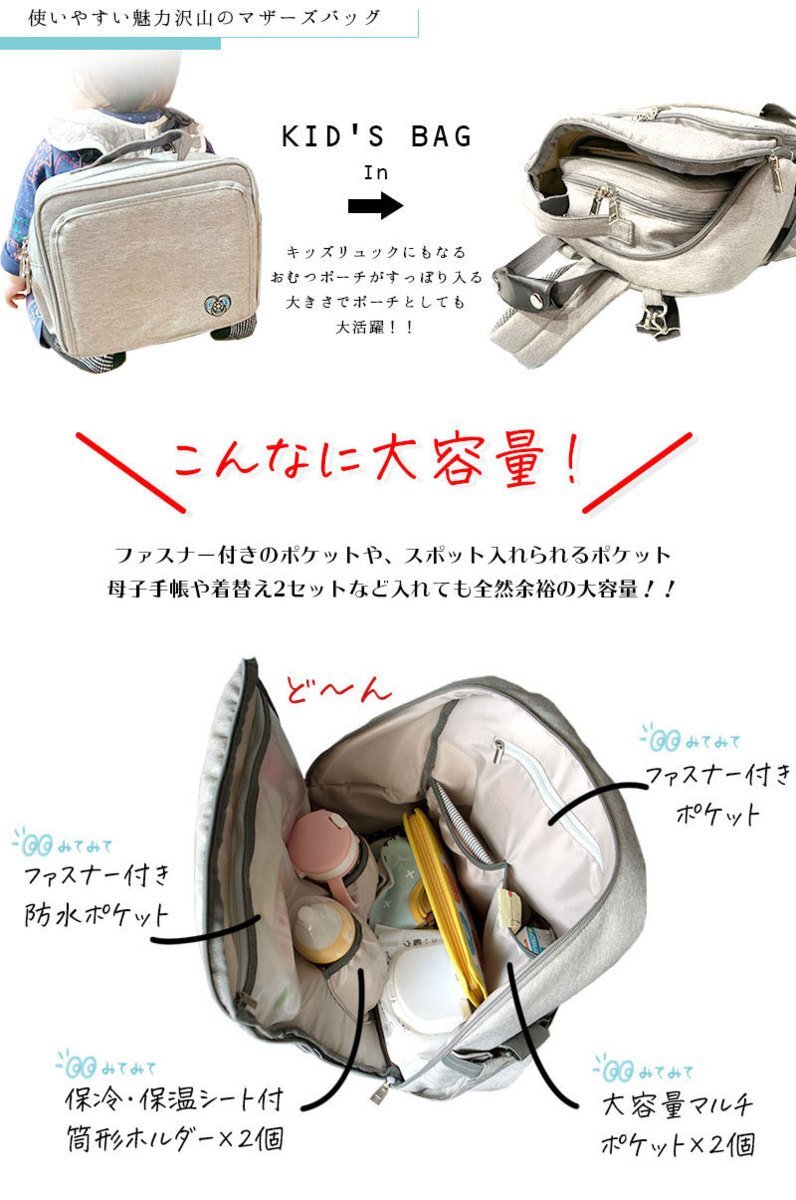などなどあったらいいな、こんなバッグが欲しいを詰めたマザーズバッグとおむつポーチのセットです。