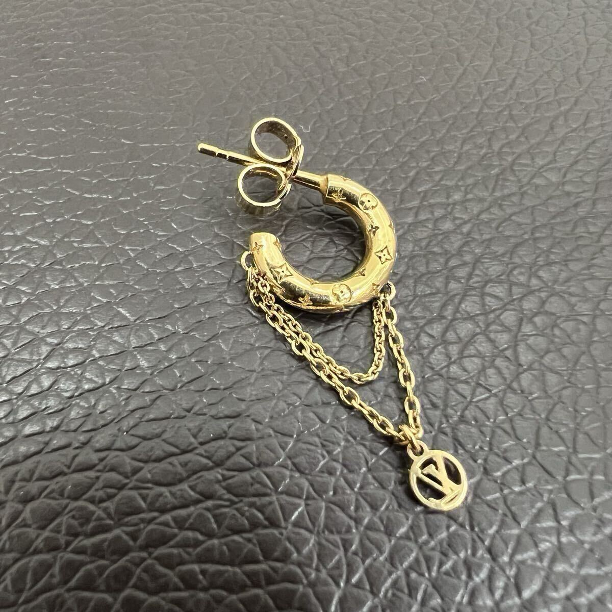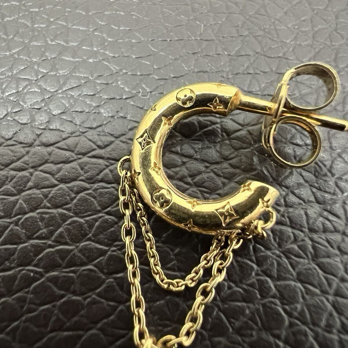 美品 LOUIS VUITTON ルイヴィトン ブックルドレイユ ミニフープ ナノグラム ピアス イヤーアクセサリー ゴールド M00572 片耳