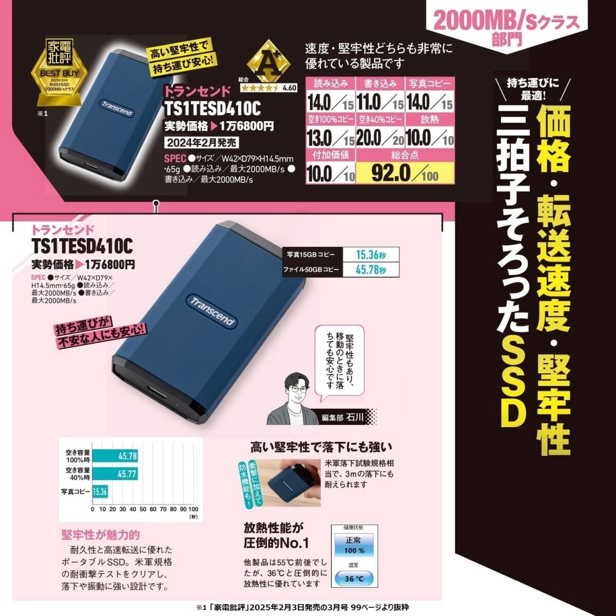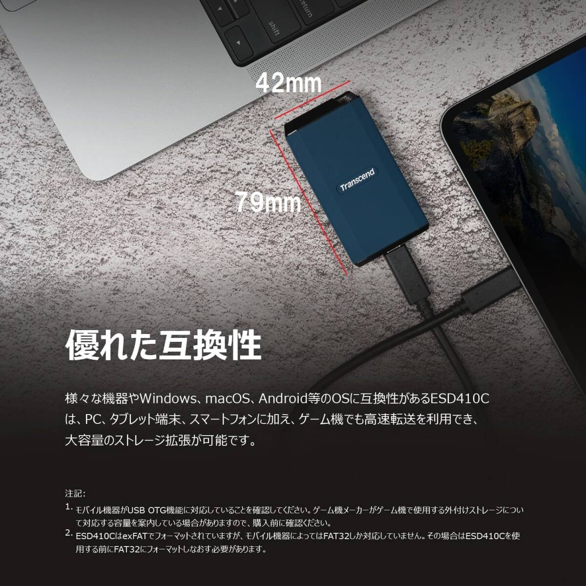 4TB 雑誌受賞商品 トランセンド ポータブルSSD 耐衝撃 USB 20Gbps 高速 最大2,000 MB/s
