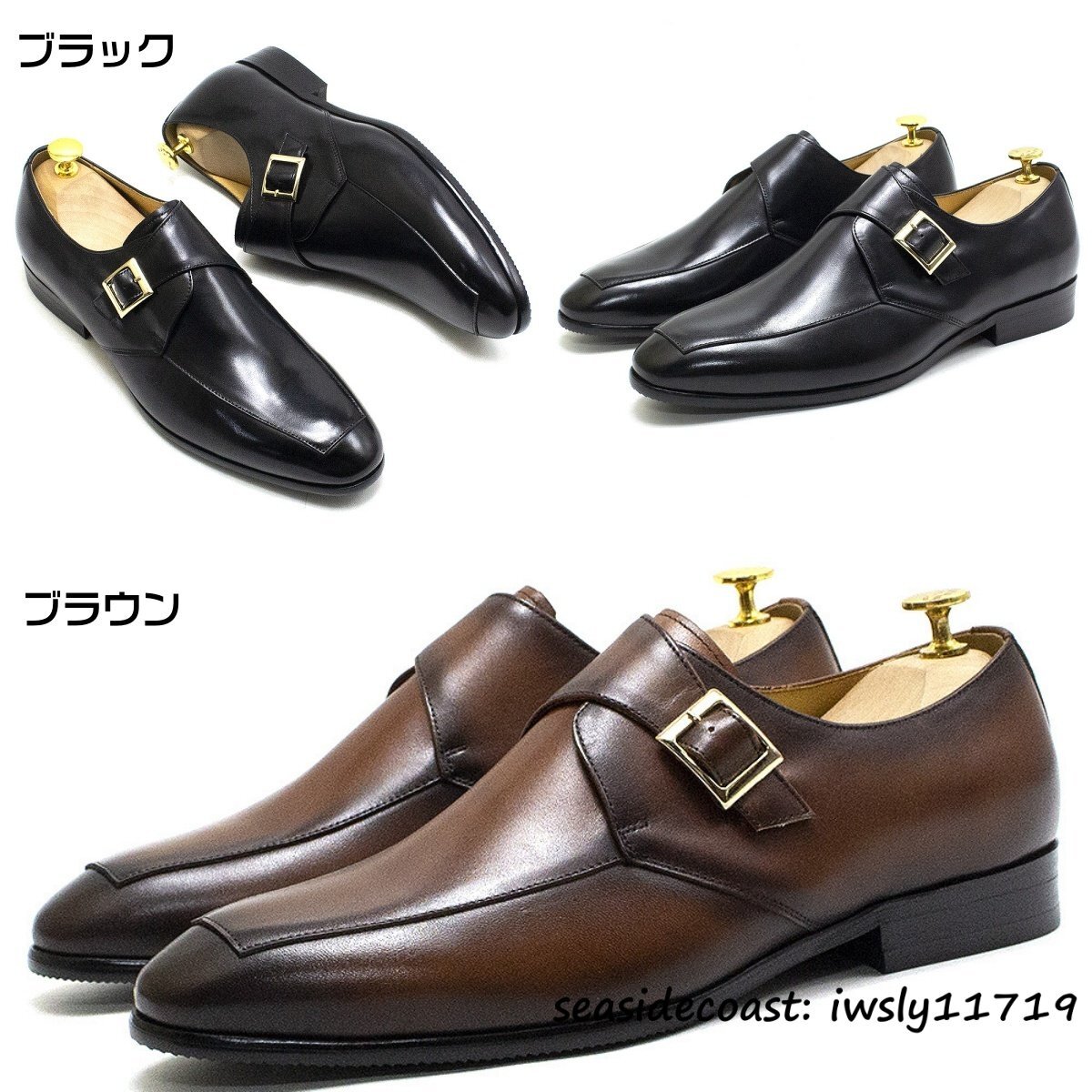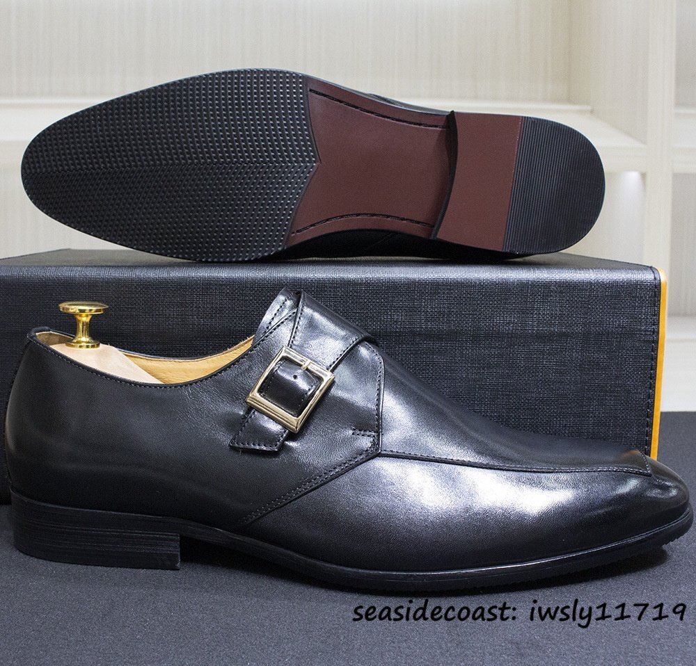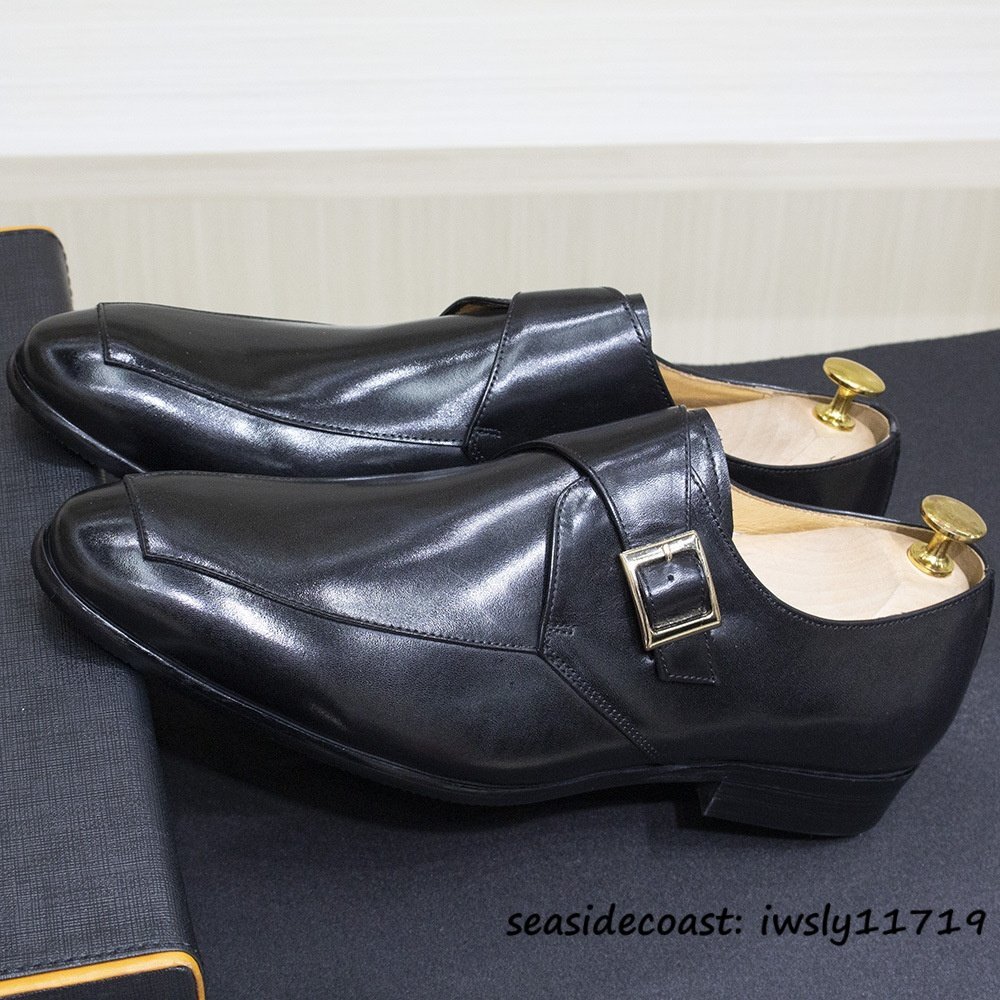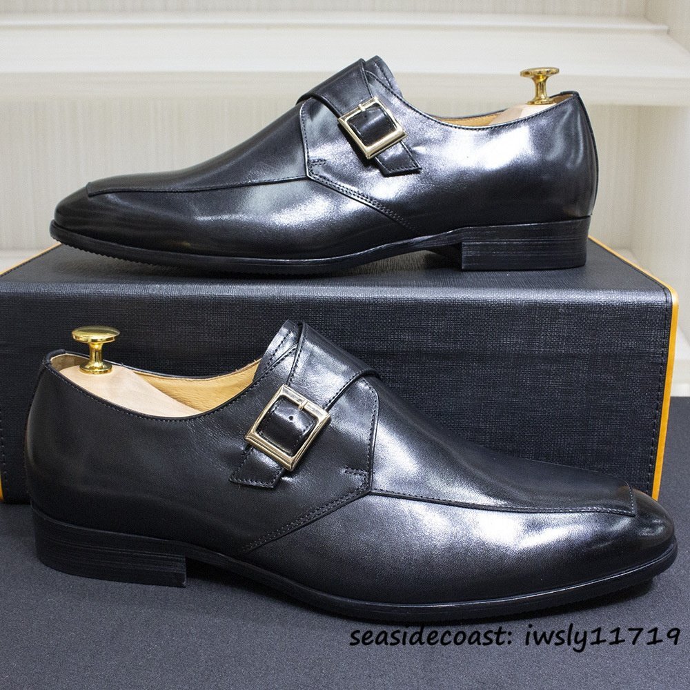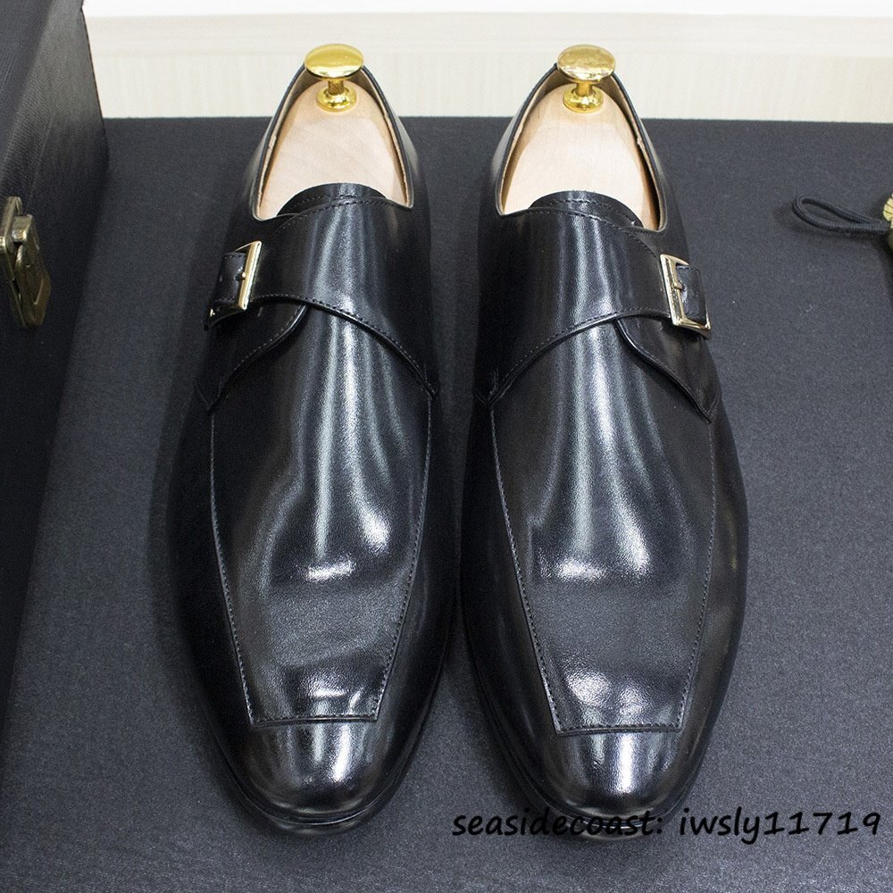 超美品★最高級 レザーシューズ 本革 ビジネスシューズ メンズ 職人手作り モンクストラップ 紳士靴 牛革 革靴 フォーマル ブラック 24.5cm
