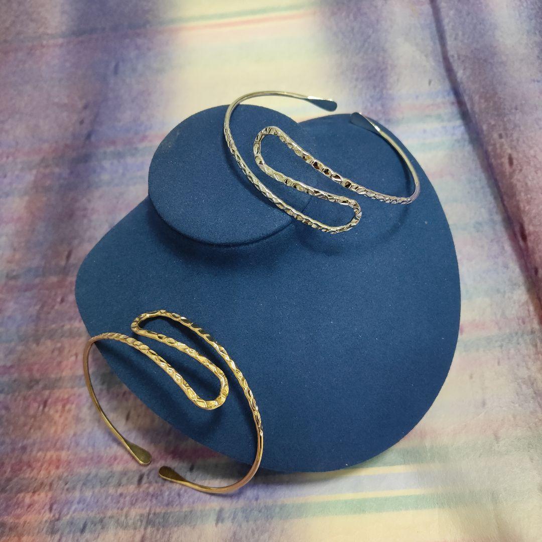 アームカフ 2個セット シルバー&ゴールド色 二の腕バングル 上腕バングル 兼用