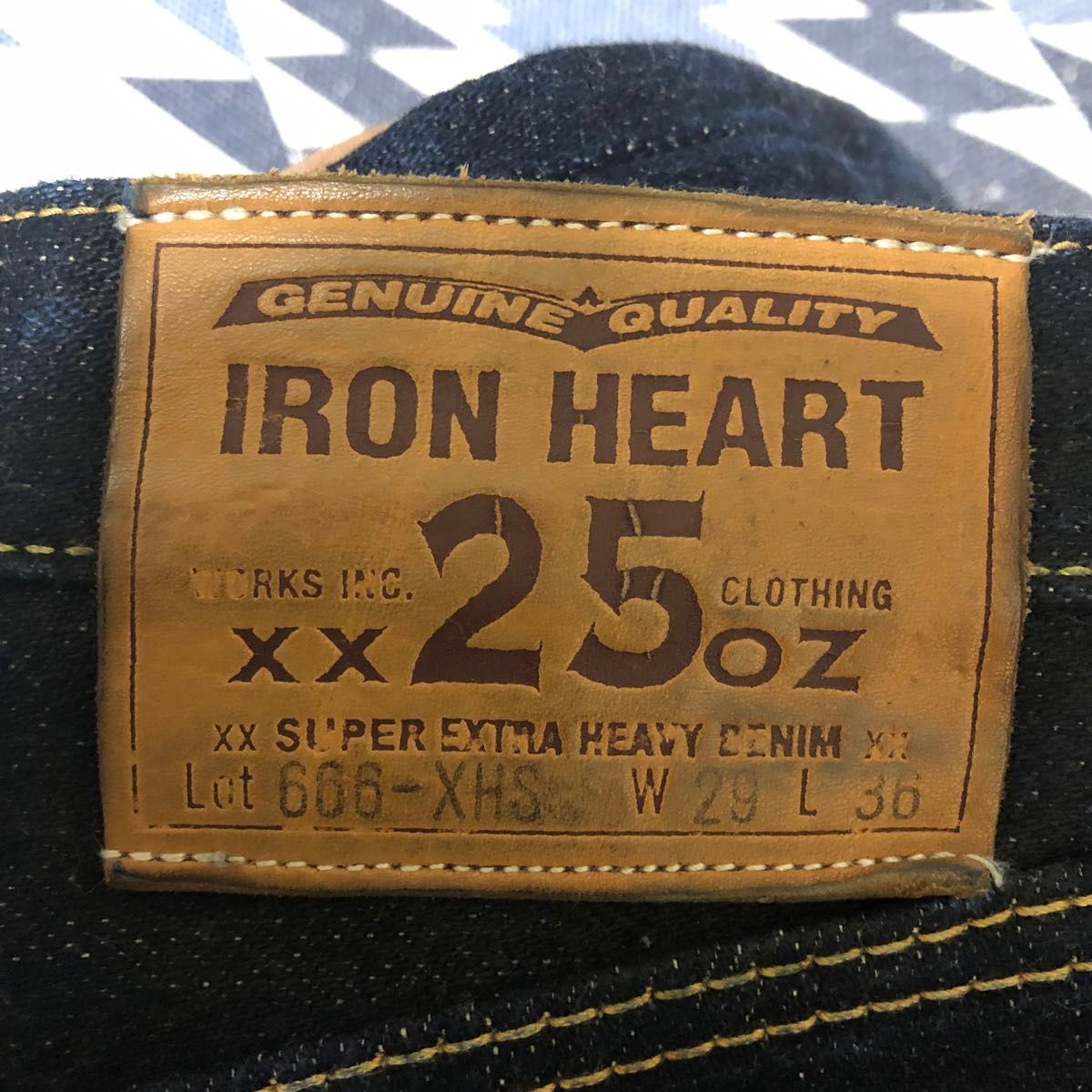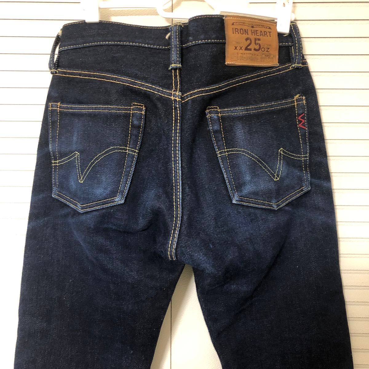 アイアンハートの極厚25OZデニムのジーンズです。エイジング中で2回洗濯しました。少しアタリが付いてきましたがまだまだこれから育てていける品です。