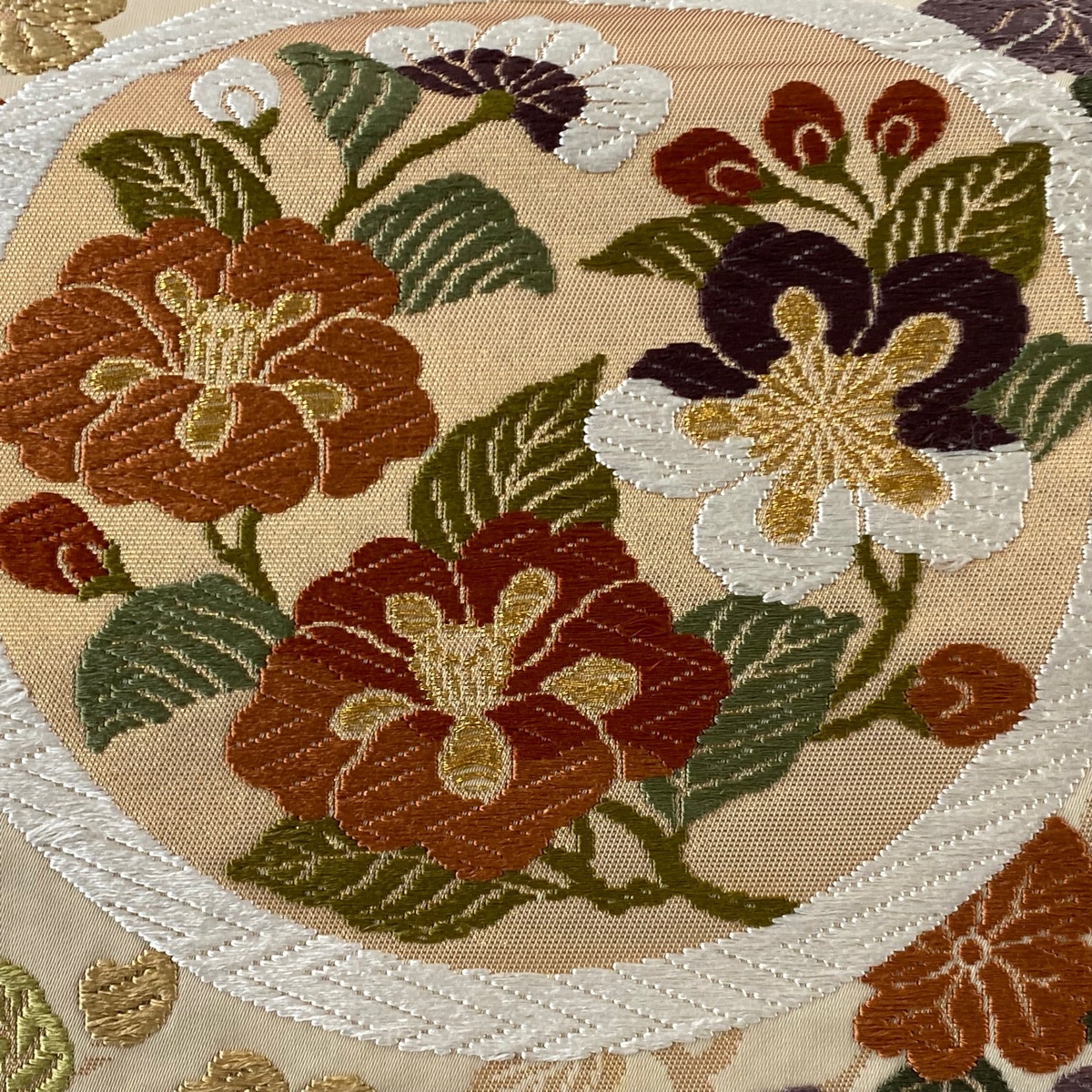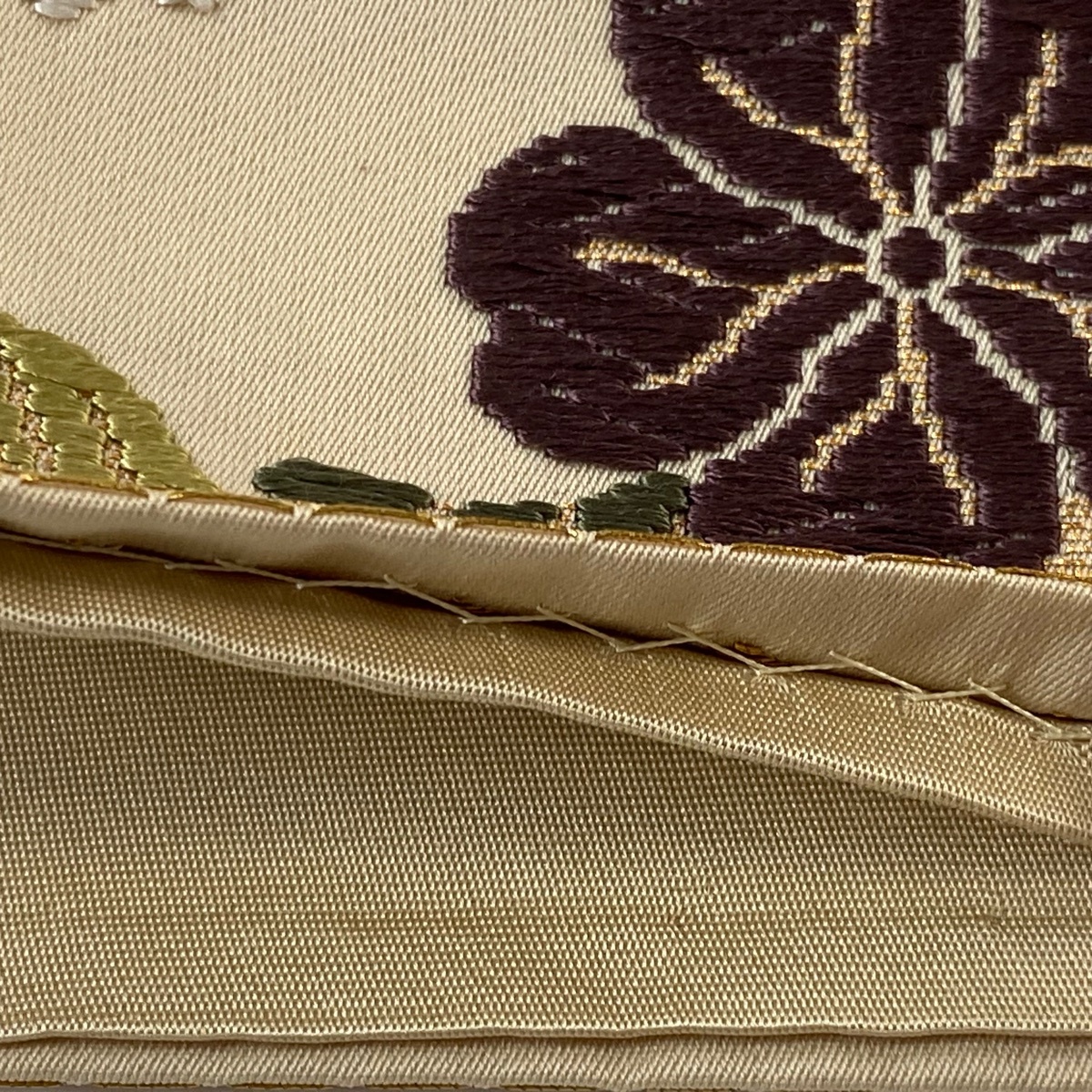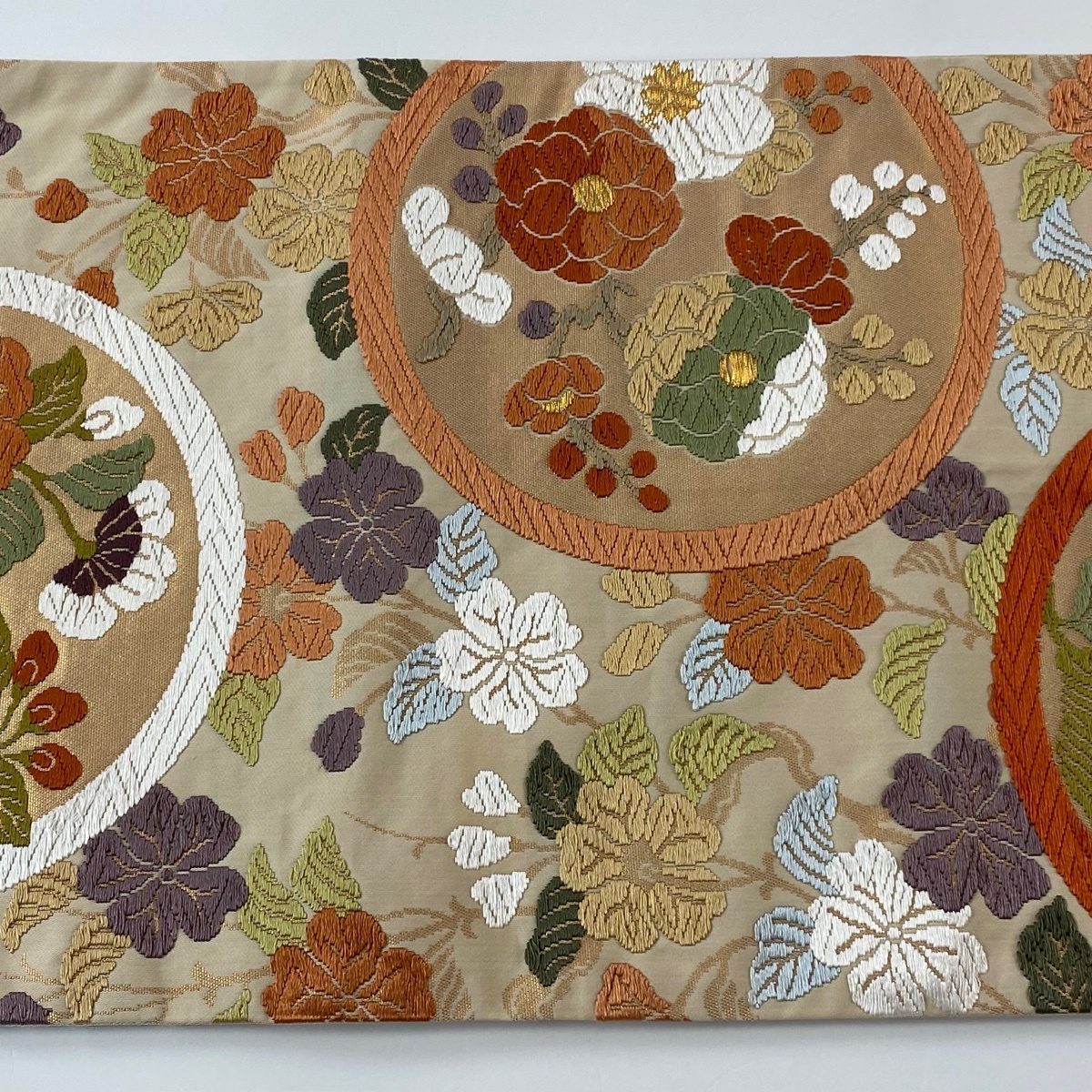 | 袋帯 秀品 菊 梅 唐織 箔 ベージュ 六通 正絹 【中古】 |