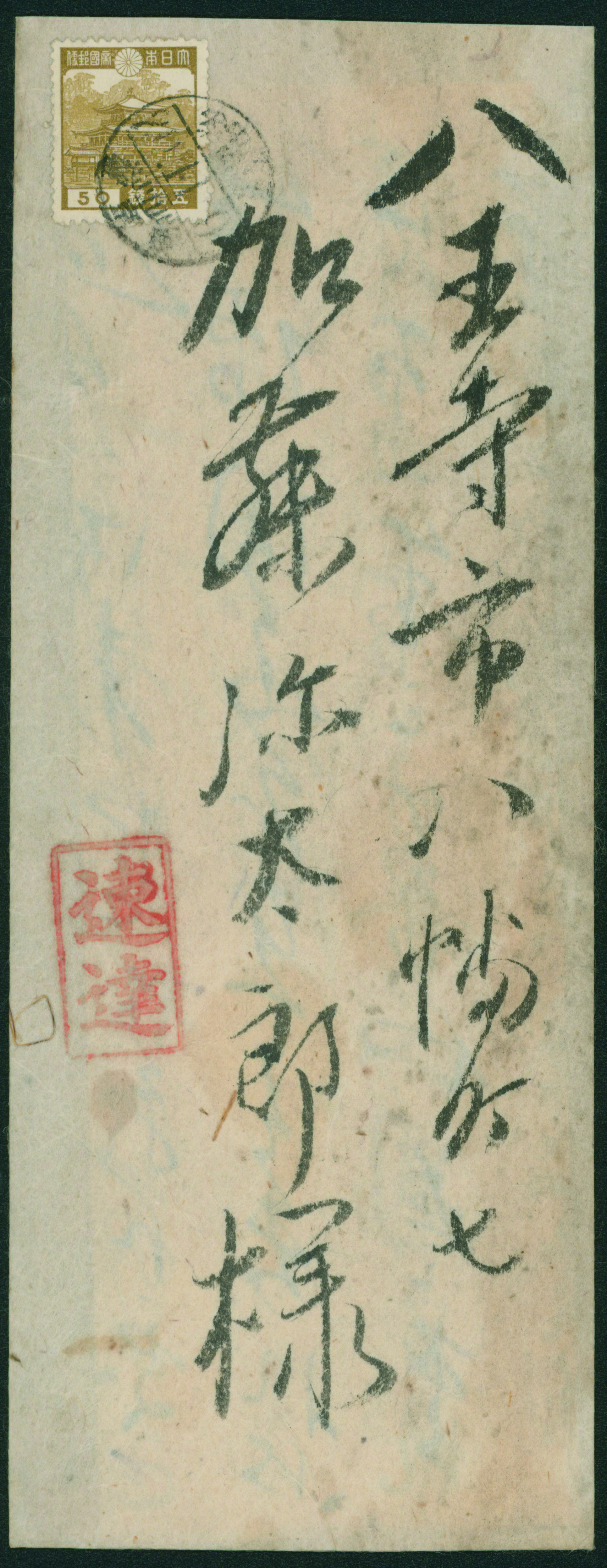 商品説明: 金閣50銭 単貼り 櫛型印 昭和20 11 9 東京中央 市内便 書状速達重量便 JPS 236