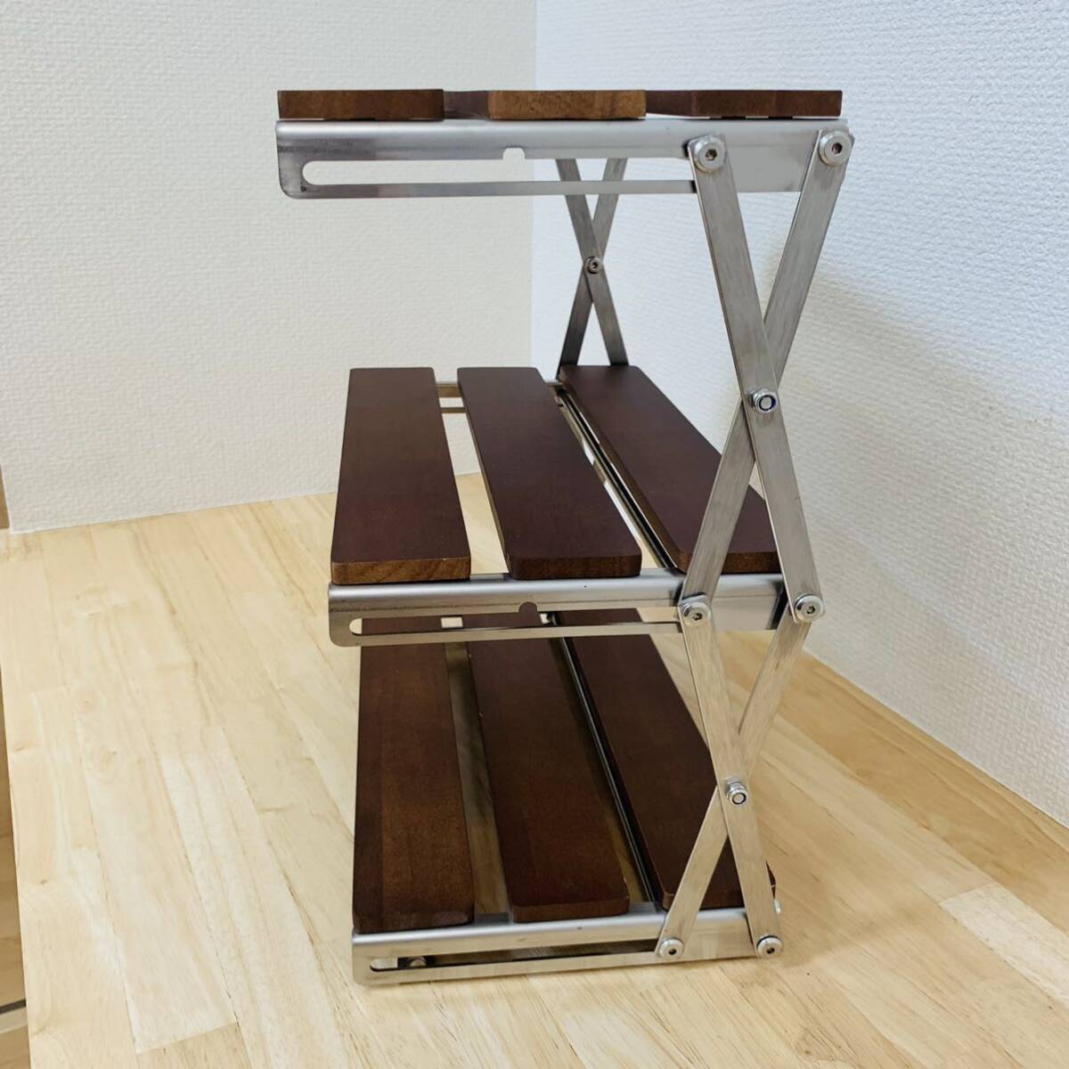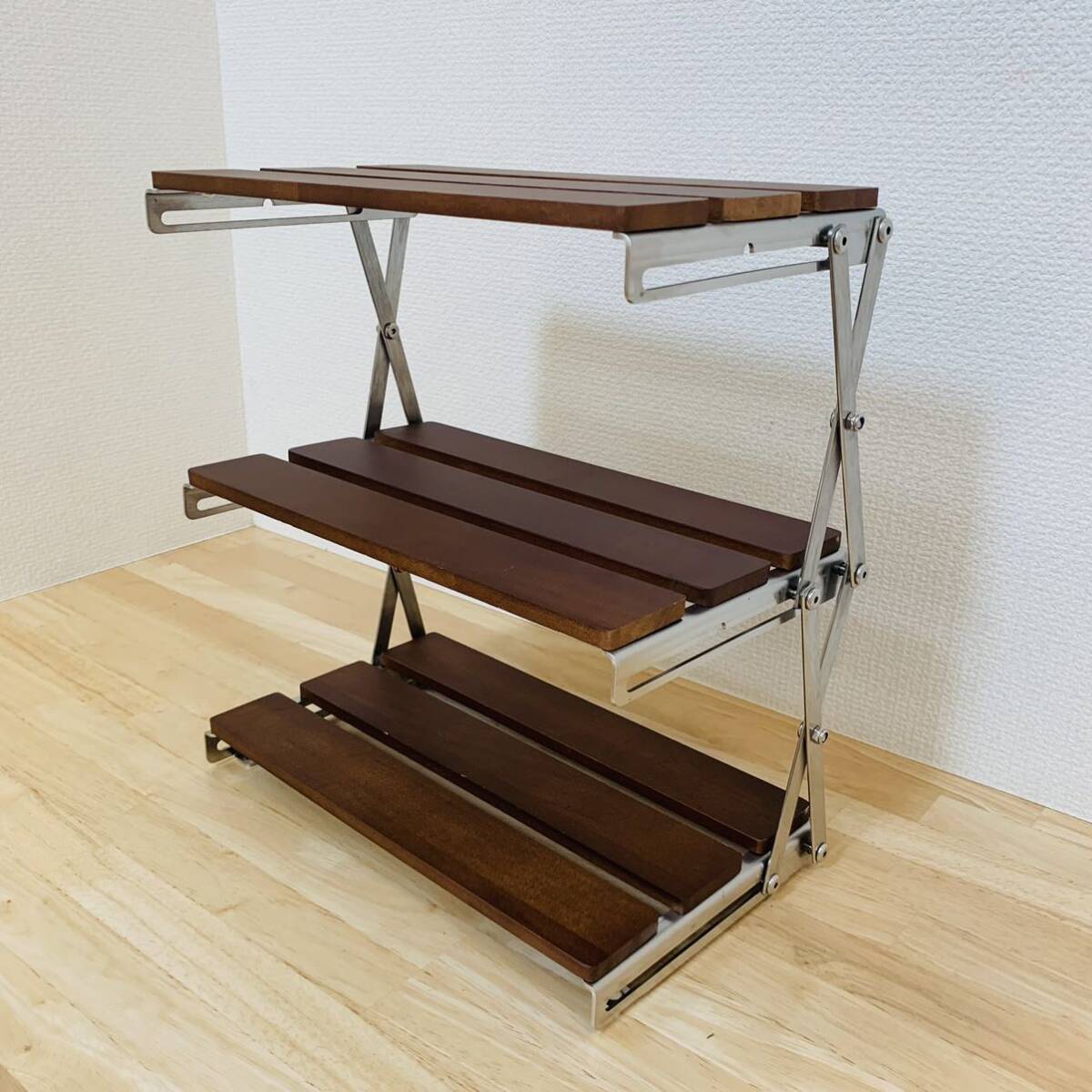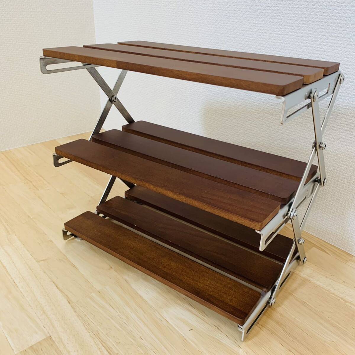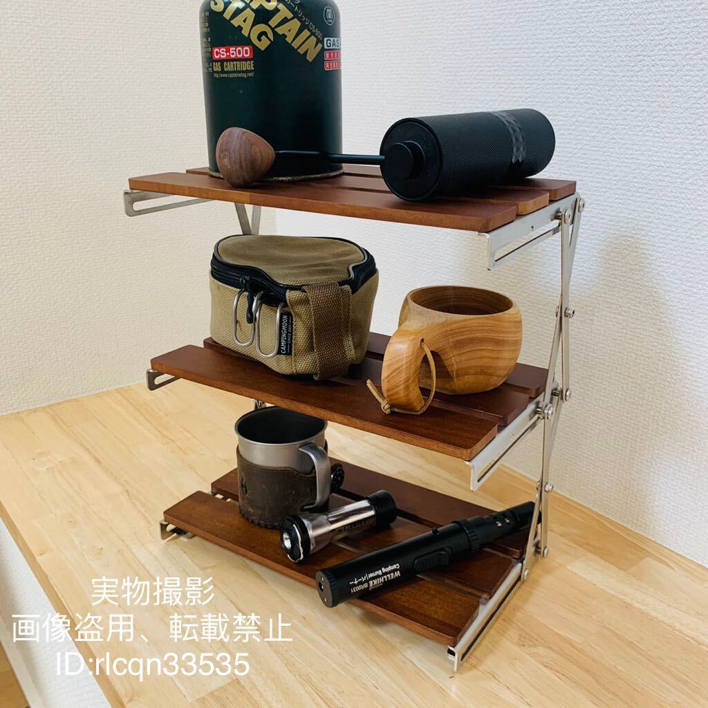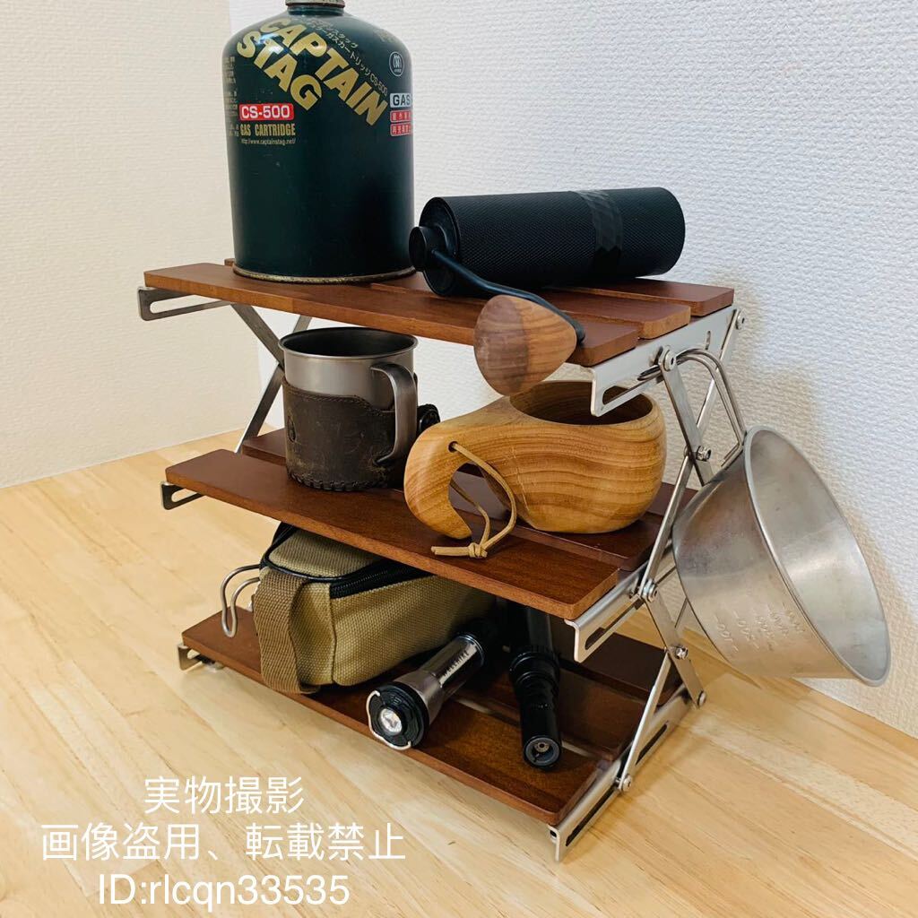 キャンプ用 卓上折り畳み置物棚 収納棚 クッカー小物収納ラック 超高品質 木製 耐荷重10kg アウトドア インテリア 1.8kg33x17.5x33cm