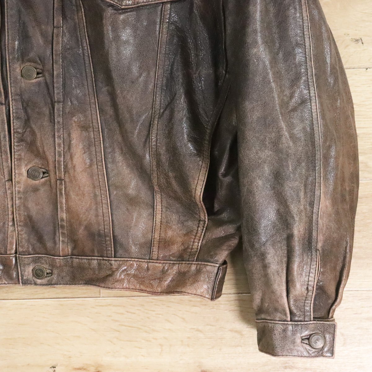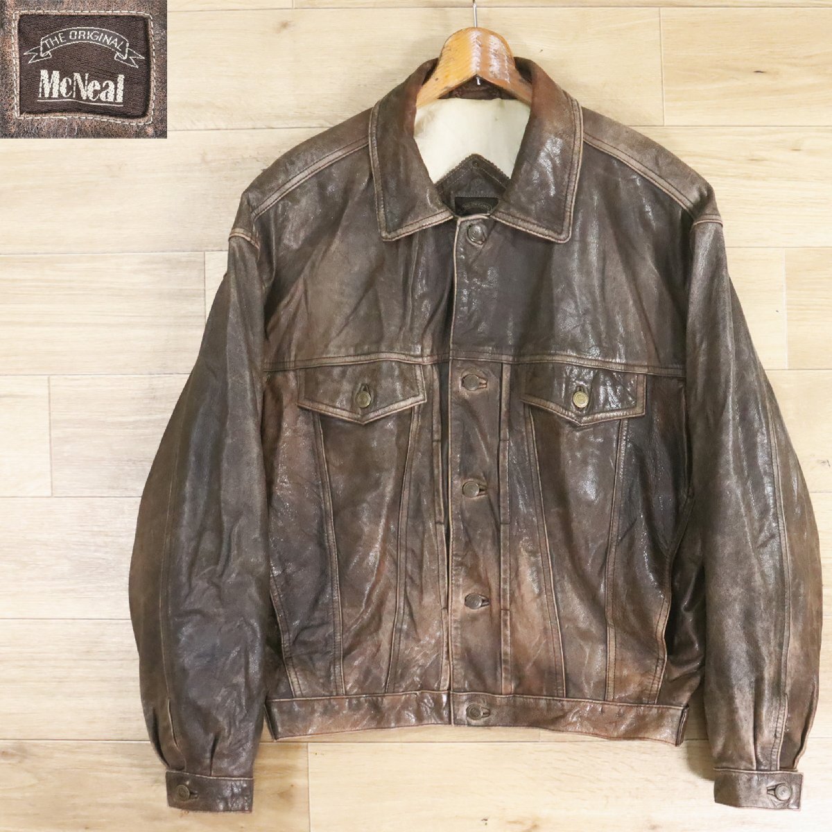 L1Y/Y7.22-4 ユーロ古着 McNEAL トラッカージャケット 本革 レザージャケット 革ジャン 皮ジャン メンズ ブラウン系 サイズ50