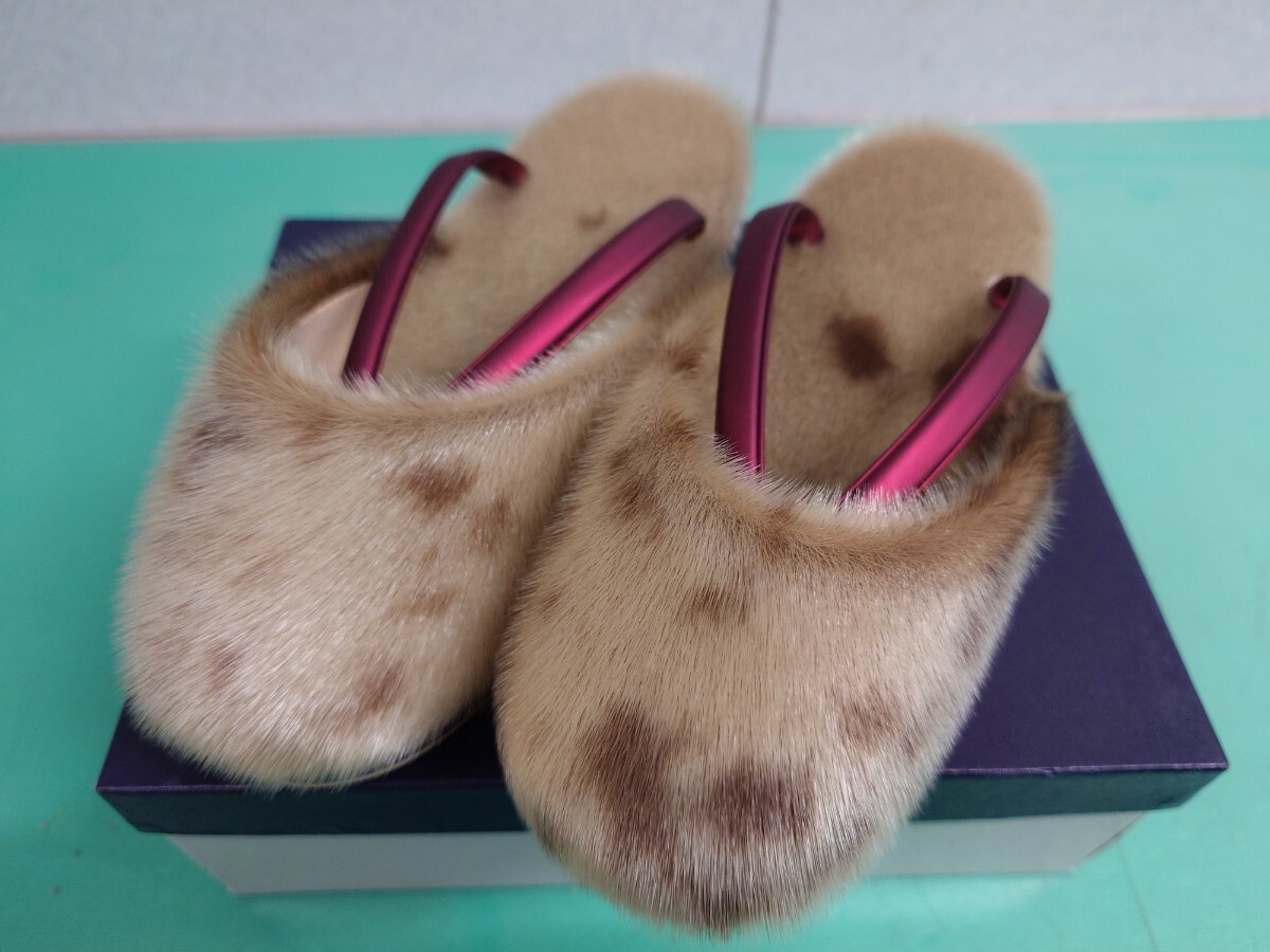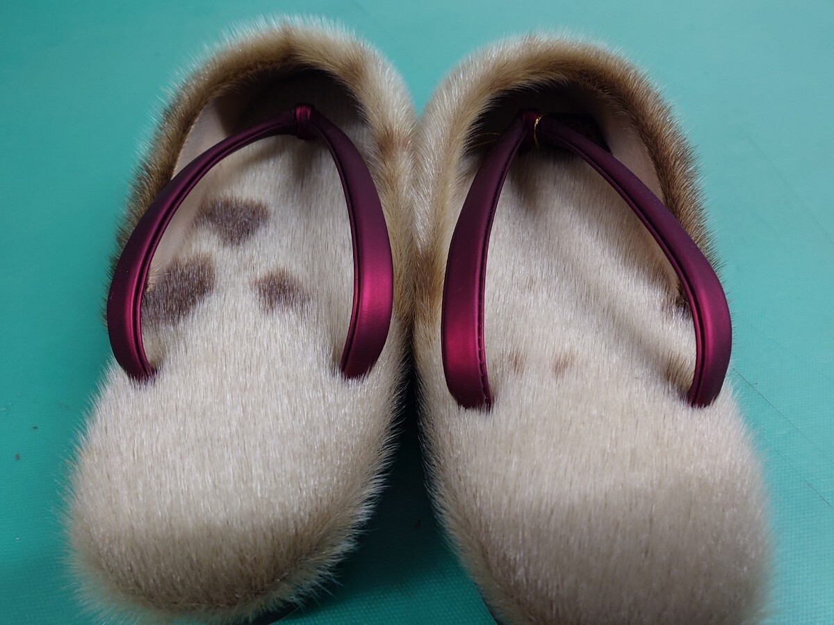 ● Seal Fur タグ付き 未使用品 上品 高級 可愛い アザラシ あざらし 海豹 毛皮 綺麗な毛並み 防寒草履 寒草履 冬草履 ③